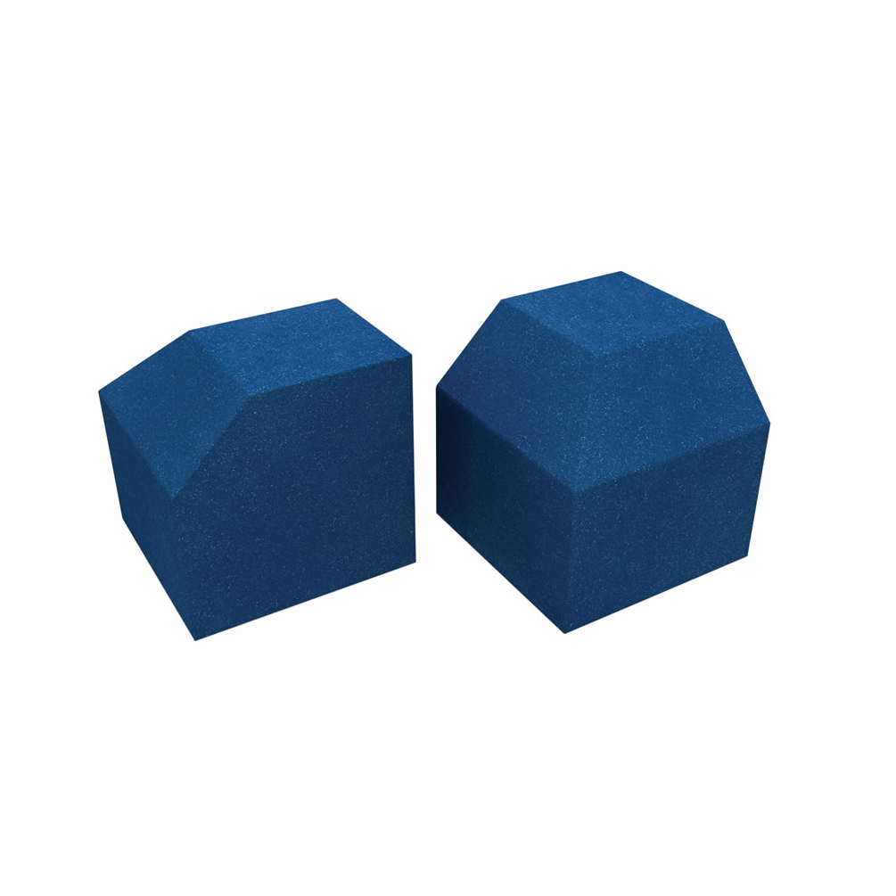 Corner cube formed from our proven open cell acoustic foam, Project Corner cubes work on a broad range of frequencies that extend down into the all important lows. They are designed to fit neatly into the vertical and horizontal corners of your studio where most bass problems form. Coving is no problem, Project Corner cubes feature an air gap at the back. Available in Charcoal Grey and Electric Blue.