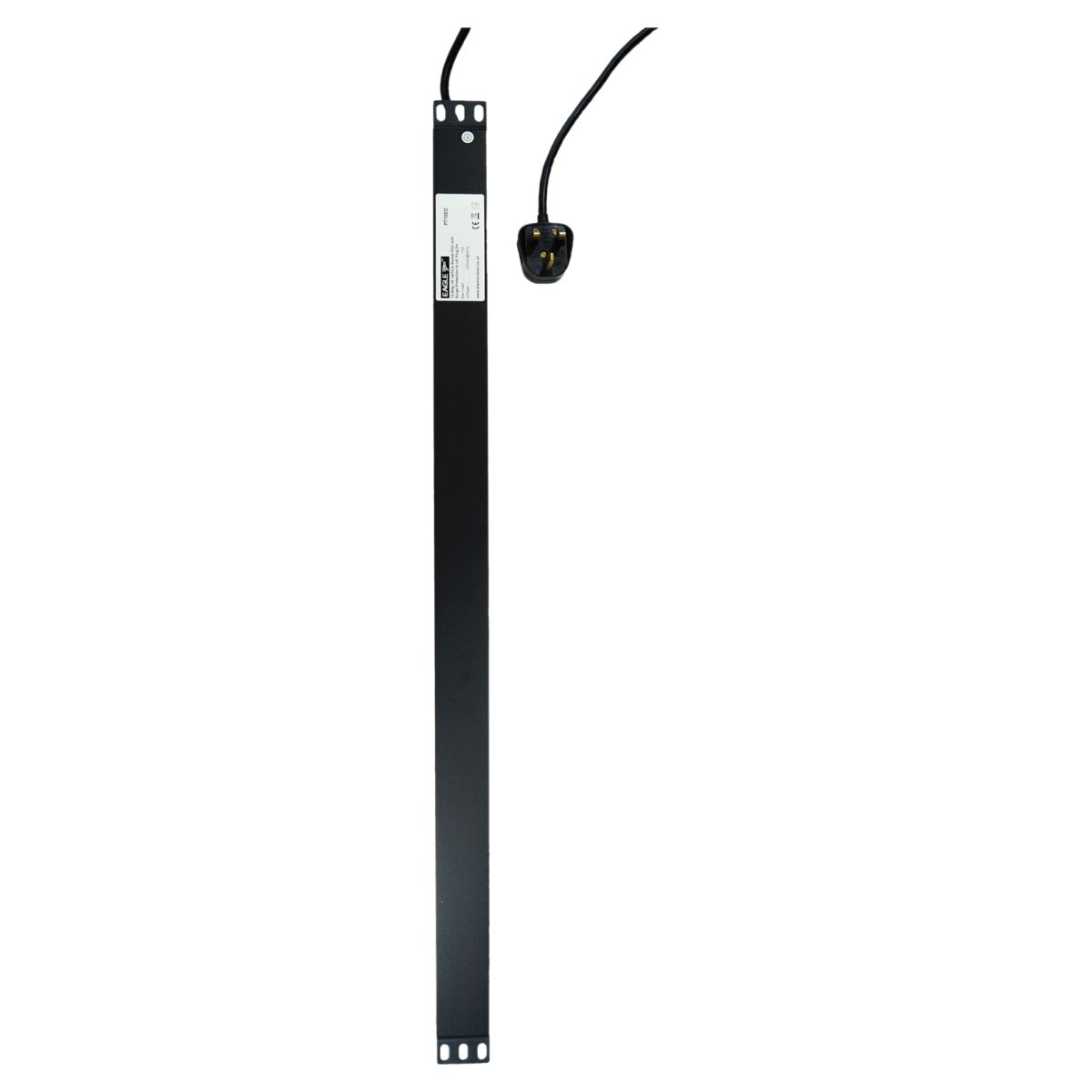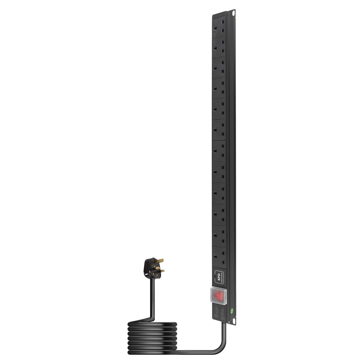 The Eagle 12-Way UK Horizontal PDU with Surge Protection features Twelve (12) 13A UK Socket outlets with a 13A Fused UK Plug, a 1U high design and an illuminated power switch with protection cover. The product is designed for use with most 19 Inch Network cabinets, vertically. Indoor Use only.