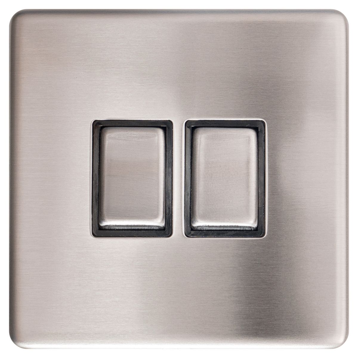 2 Way 2 Gang Light Switch Curved Edge 10A. Light switch with screwless brushed chrome curved edge finish .2 gang internal switch. Designed for internal use only. Safety - Electrical products must be installed in accordance with local building regulations. If in any doubt, or where required by the law, consult a professional for installation.
