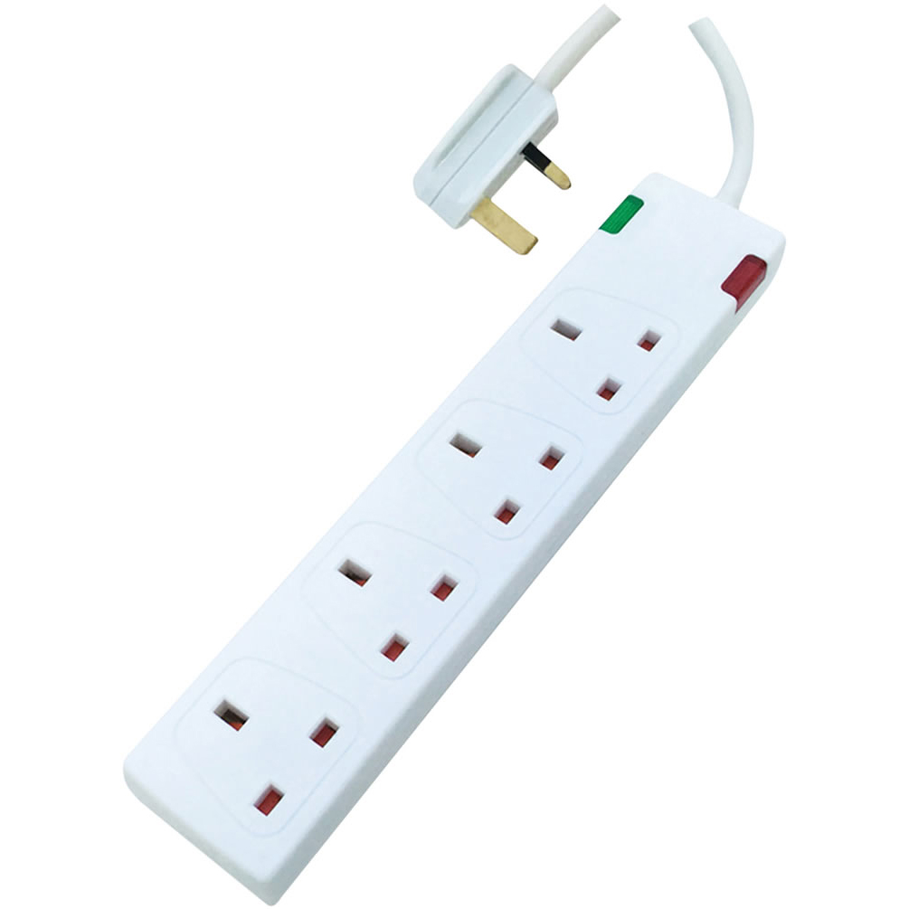 4 Gang surge protected extension socket with Neon Indicator fitted with a 13 A plug