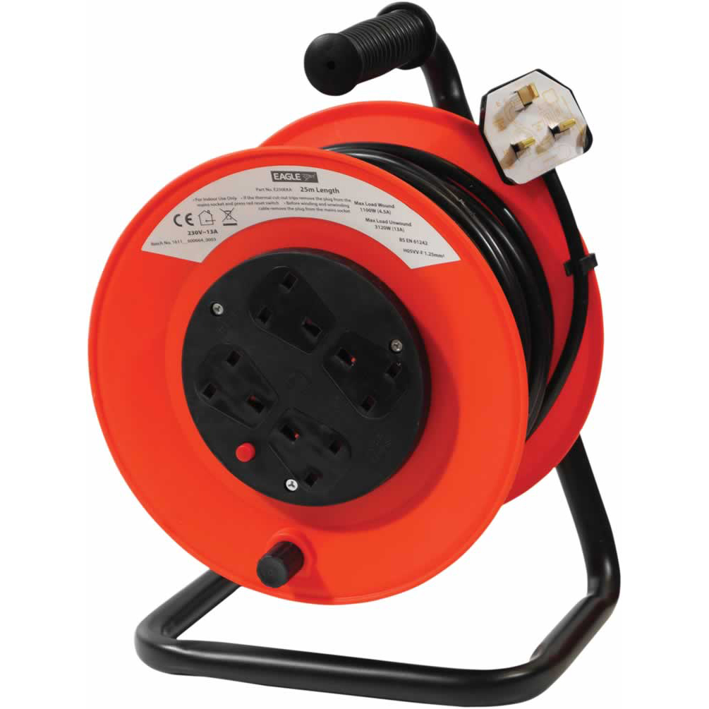 We're really sorry... ...we don't currently have that one in stock Please add your email and we'll notify you when it's back Email Your Name Your Email Your Comments SendClose Window Login Details Email Password Remember login on this computer? New Account Full Name Email Password All Categories» Advertising EquipmentAerials and Signal EquipmentAudio VisualAutomotive and MobileCabinet Speakers and AccCablesConnectorsDoor Entry and IntercomsElectricalEntertainment LightingGift IdeasHeating and CoolingHobbiesHome and GardenLampsLeadsLightingPower SuppliesPublic AddressSecurity ProductsSound SectionStands and SupportsStorageTelecommunicationTest EquipmentTools and Service Aids » Ceiling RosesCeiling SwitchesElectric PlugsElectrical Back BoxesElectrical Fuses and HoldersExtensionsFluorescent StartersHigh Current ConnectorsInline ConnectorsJunction BoxLamp HoldersMains Power LeadsPlate Switches and SocketsPlug In Power Converter » Cable ReelsExtension LeadsExtension Sockets » All Products Eagle 4 Socket Extension Reel (Cable Length 25M)PRODUCT ID E250EKAA Red and Black 4 socket extension reel with stand, carry handle and Over heat protection. 4.4 A maximum current fully wound, 13 A maximum current fully unwound...STOCK LEVEL 0Price: £39.99 Notify when back in stock« Previous | Next »Description A Red and Black 4 socket extension reel with stand, carry handle and Over heat protection. 4.4 A maximum current fully wound, 13 A maximum current fully unwound. Indoor use only Designed for UK usage With carry handle for ease of transport Cable Length (m) 25
