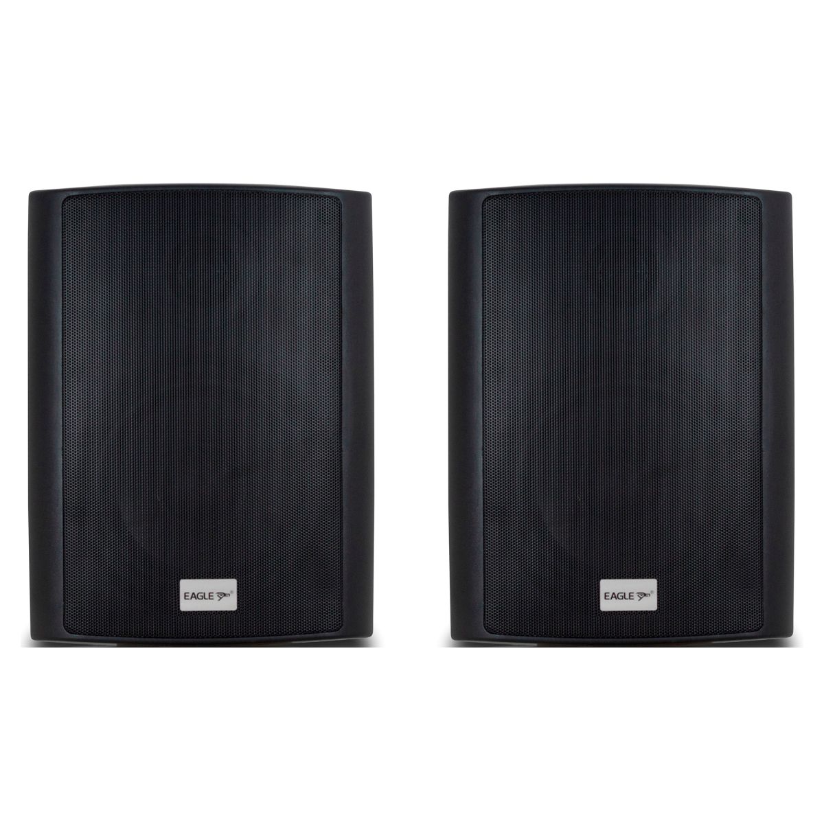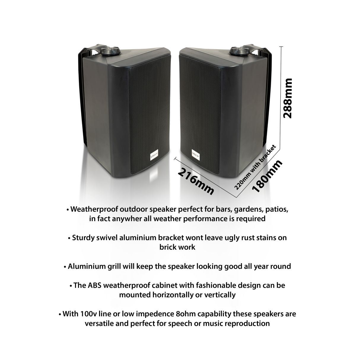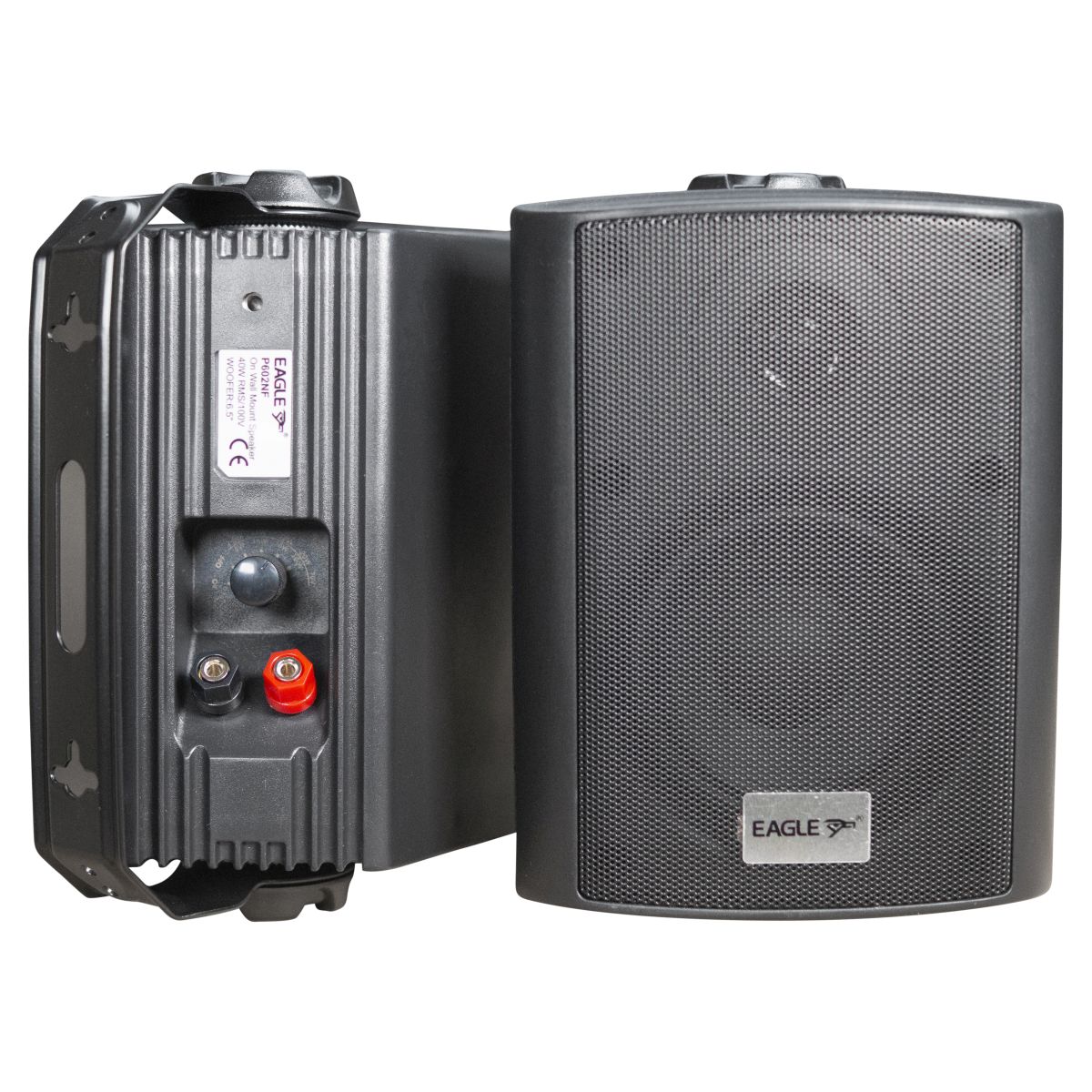 This Eagle 100V Line 8 ohm speakers offer excellent sound quality and flexibility. With an Aluminium Grill, Aluminium Bracket and a sealed box its perfect for outoor use. Also ideal for use in bars, restaurants, retail shops and offices, in fact anywhere quality background audio is required. They are perfect for background music or public address applications. The speaker features a silk-dome tweeter and a polypropylene (moisture resistant) bass/midrange driver. Switchable between 100V tappings or 8 Ohm operation via a rotary switch. The speakers can be mounted to the wall either horizontally or vertically with the supplied bracket.
