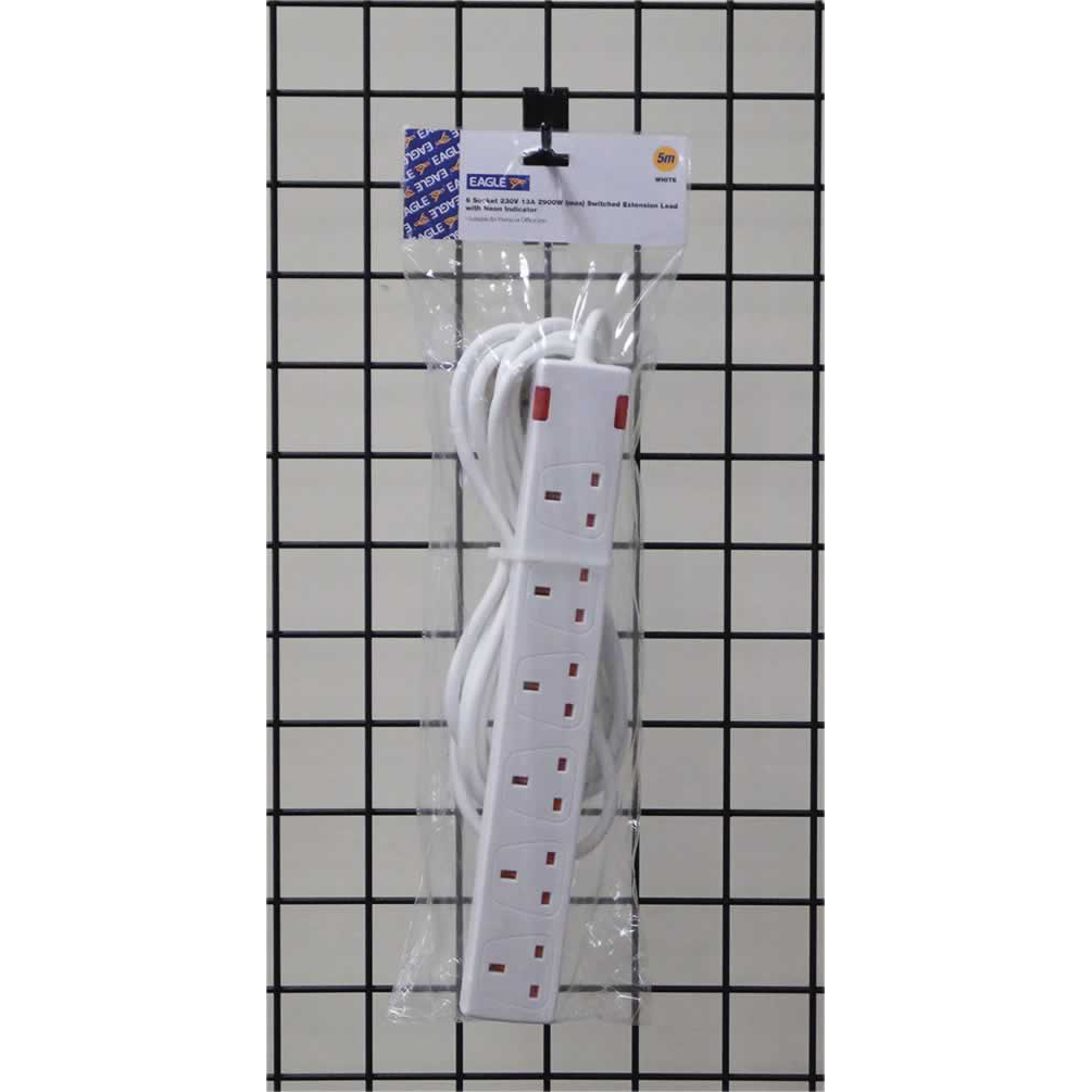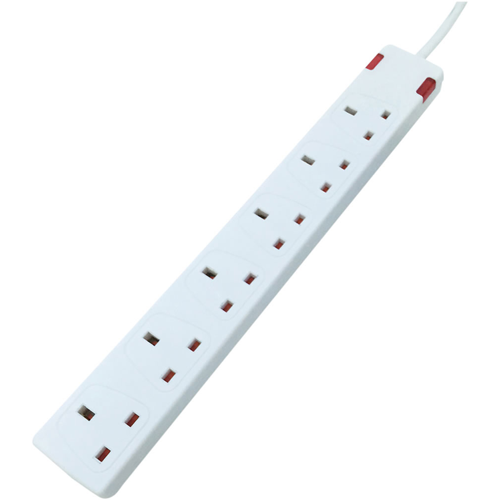 6 Gang extension socket with Neon Indicator fitted with a 13 A plug