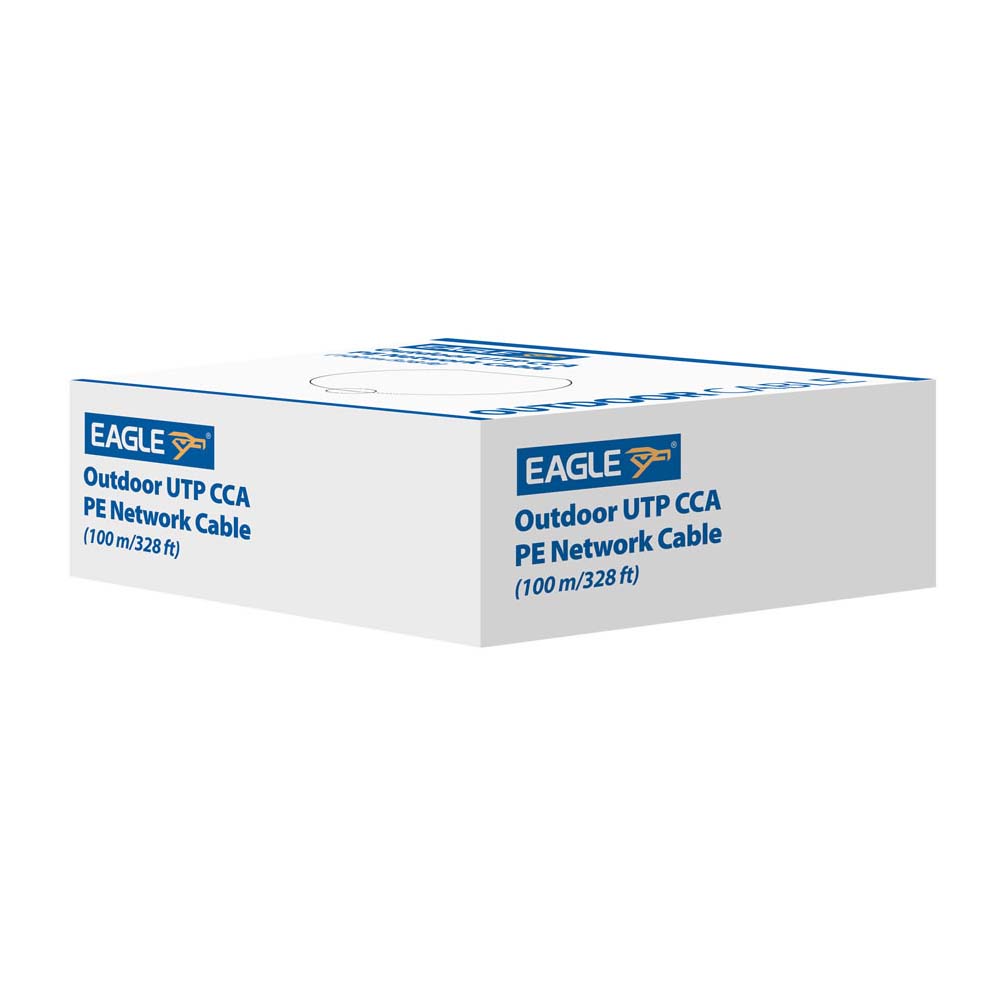 Outdoor Cat5e-CCA ethernet network cable (4 pair UTP) is CCA (24 AWG) and supplied in a continuous 100 m length (328 ft). This product is an ideal alternative to Cat5e cable utilising copper clad alloy (CCA) instead of copper conduction and, therefore, reducing the cost significantly. Manufactured in accordance with ISO11801 and fully ROHS 2002 95EC compliant. Supplied in dispensing box with integrated cable feed. Cable marked at 1 metre intervals for ease of use.