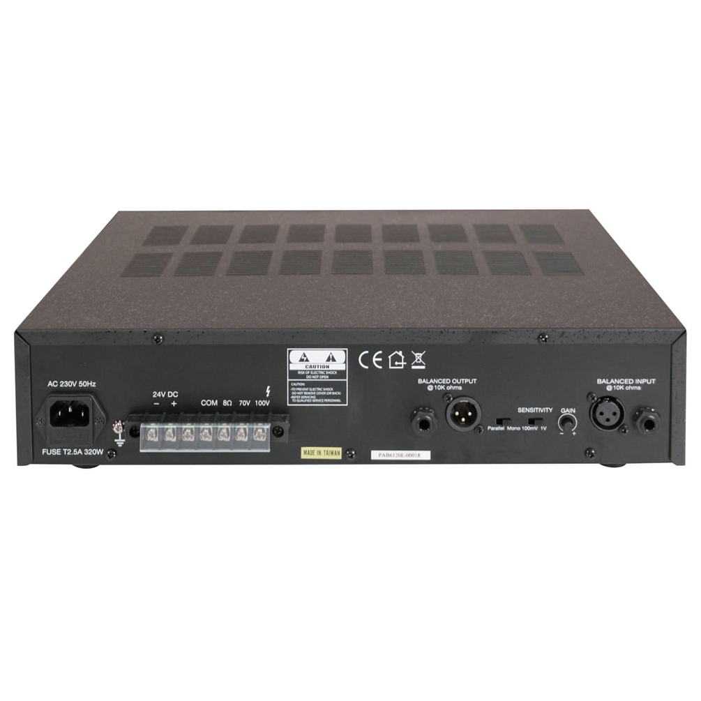 We're really sorry... ...we don't currently have that one in stock Please add your email and we'll notify you when it's back Email Your Name Your Email Your Comments SendClose Window Login Details Email Password Remember login on this computer? New Account Full Name Email Password All Categories» Advertising EquipmentAerials and Signal EquipmentAudio VisualAutomotive and MobileCabinet Speakers and AccCablesConnectorsDoor Entry and IntercomsElectricalEntertainment LightingGift IdeasHeating and CoolingHobbiesHome and GardenLampsLeadsLightingPower SuppliesPublic AddressSecurity ProductsSound SectionStands and SupportsStorageTelecommunicationTest EquipmentTools and Service Aids » 100V Line TransformersAttenuatorsMedia PlayersMegaphonesPA AmplifiersPA MicrophonesPA SpeakersRadio CommunicationSound LimitersSpeaker Horns » 100 Volt Single ZoneADS AmplifiersBluetooth AmplifierBooster AmplifiersMobile Amplifier » All Products Eagle PAB6120E 120W 100V Line Booster AmplifierPRODUCT ID P648XAWhen you need additional power amplification to power more speakers in a system this great quality Booster Amplifier is compatible with all amplifiers in the Eagle Public Address range ...STOCK LEVEL 43 In StockPrice: £199.99 Quantity-+ Add to Cart« Previous | Next »Description When you need additional power amplification to power more speakers in a system this great quality Booster Amplifier is compatible with all amplifiers in the Eagle Public Address range and any other pieces of equipment with a line level output. Fan assisted cooling maximises reliability and a switchable input sensitivity to enable correct interface with different equipment, Sensitivity selector switch. P648XA P648XB Auxillary Input Sensitivity selectable (100 mV/1 V) Sensitivity selectable (100 mV/1 V) Colour Black Black DC Input (V) 24 24 Frequency Response (Hz) 50Hz 15KHz ± 3dB 50Hz 15KHz ± 3dB Output 120 W 100 V 240 W 100 V Outputs 100 V/70 V/8 Ohm 100 V/70 V/8 Ohm Power Input 230 V AC @ 50 Hz 230 V AC @ 50 Hz Power RMS (W) 120 240 THD 1% @ 1kHz 1% @ 1kHz Weight (kg) 8.2 8.2