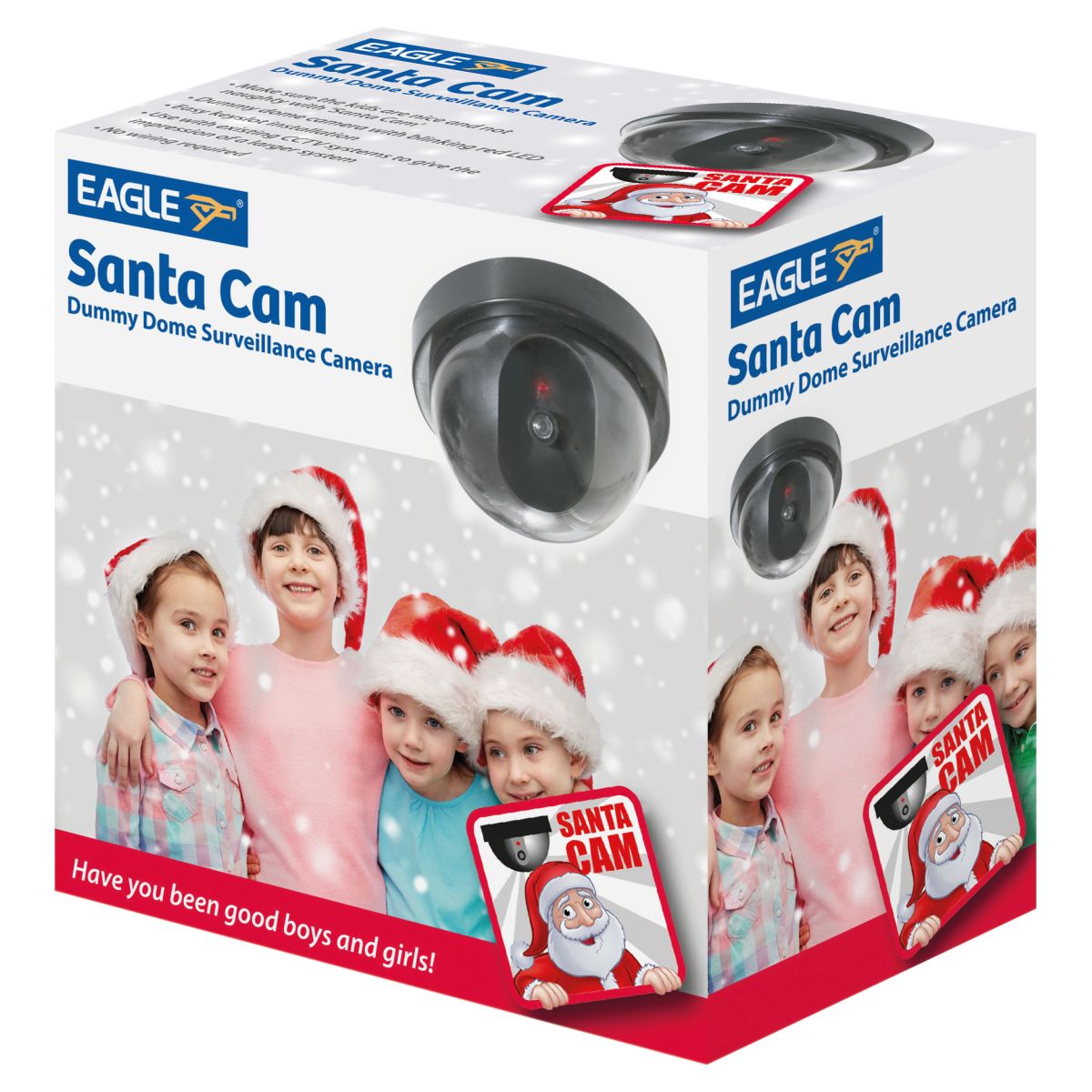 Want to make sure your kids are nice and not naughty in the run up to Christmas, then install this realistic Santa Cam ? When Christmas is over the unit can be used as a realistic replica of a standard dome camera. The flashing red LED is a visual deterrent and the unit is easy to install via the 2 key slots. The dome is powered by 2x AA batteries (not supplied). The dome can also be used in conjunction with an existing CCTV system to give the impression of a larger system.