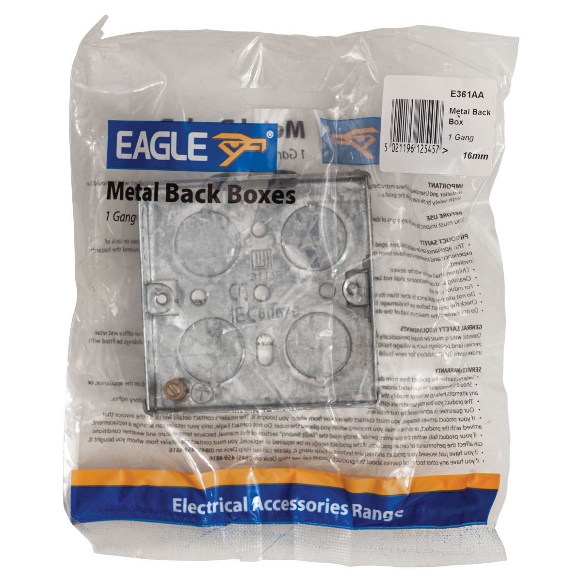 We're really sorry... ...we don't currently have that one in stock Please add your email and we'll notify you when it's back Email Your Name Your Email Your Comments SendClose Window Login Details Email Password Remember login on this computer? New Account Full Name Email Password All Categories» Advertising EquipmentAerials and Signal EquipmentAudio VisualAutomotive and MobileCabinet Speakers and AccCablesConnectorsDoor Entry and IntercomsElectricalEntertainment LightingGift IdeasHeating and CoolingHobbiesHome and GardenLampsLeadsLightingPower SuppliesPublic AddressSecurity ProductsSound SectionStands and SupportsStorageTelecommunicationTest EquipmentTools and Service Aids » Ceiling RosesCeiling SwitchesElectric PlugsElectrical Back BoxesElectrical Fuses and HoldersExtensionsFluorescent StartersHigh Current ConnectorsInline ConnectorsJunction BoxLamp HoldersMains Power LeadsPlate Switches and SocketsPlug In Power Converter » All Products Eagle Single Gang Zinc Plated Metal Back Box 16mm DeepPRODUCT ID E361AAA single gang metal back box, choose from 4 different mounting depths. Made from galvanised steel this multiple knockout back box features an earth terminal and adjustable fixing lug. Made to IEC 6067..STOCK LEVEL 1358 In StockPrice: £0.54 Quantity-+ Add to Cart« Previous | Next »DescriptionEagle Single Gang Zinc Plated Metal Back Box (Mounting Depth (mm) 16)A single gang metal back box. Made from galvanised steel this multiple knockout back box features an earth terminal and adjustable fixing lug. Made to IEC 60670-1:2015 standards.Metal Back BoxSingle GangMounting Depth (mm) 16