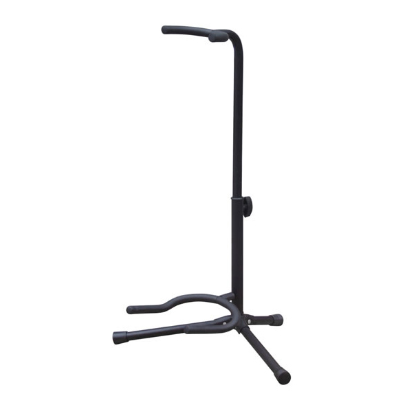 A high quality floor standing, single guitar stand for electric guitars. Made from metal with a black finish.