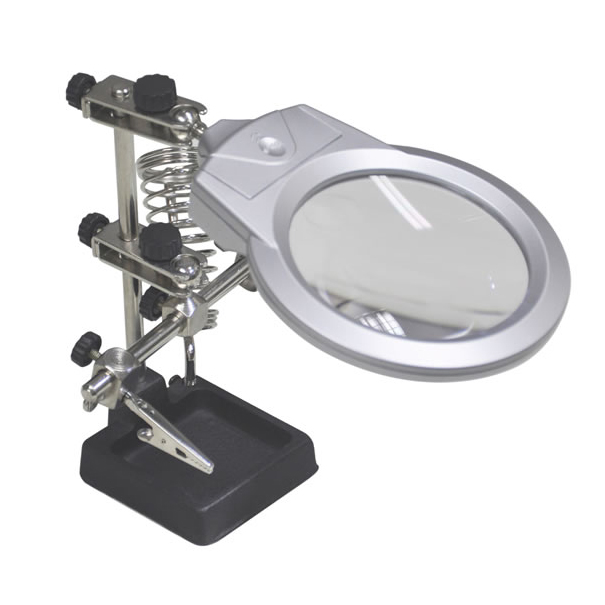 We're really sorry... ...we don't currently have that one in stock Please add your email and we'll notify you when it's back Email Your Name Your Email Your Comments SendClose Window Login Details Email Password Remember login on this computer? New Account Full Name Email Password All Categories» Advertising EquipmentAerials and Signal EquipmentAudio VisualAutomotive and MobileCabinet Speakers and AccCablesConnectorsDoor Entry and IntercomsElectricalEntertainment LightingGift IdeasHeating and CoolingHobbiesHome and GardenLampsLeadsLightingPower SuppliesPublic AddressSecurity ProductsSound SectionStands and SupportsStorageTelecommunicationTest EquipmentTools and Service Aids » Action CanCrimping PliersDigital TimersHeat Sink CompoundHelping HandsInsect KillerPick Up ToolsQuick Test BlocksScrewdriver SetsServisol ProductsSide CuttersSolderSoldering IronsTapesTool KitsWD40 Products » All Products Illuminated Helping Hands with Magnifier LensPRODUCT ID Y057ACThe Helping Hands tool features a round 90 mm magnifier lens (2 x magnification) and includes 2 LED lights (2xAAA, not supplied). With a weighted, cast iron base for stability and 2 art...STOCK LEVEL 2381 In StockPrice: £7.99 Quantity-+ Add to Cart« Previous | Next »Description Illuminated Helping Hands with 90 mm Magnifier Lens, Soldering Iron Rest, 2 Articulated Arms and 2 LED lights The Helping Hands tool features a round 90 mm magnifier lens (2 x magnification) and includes 2 LED lights (2xAAA, not supplied). With a weighted, cast iron base for stability and 2 articulated arms with crocodile clips for gripping, this model also features an adjustable soldering iron rest, making it the ideal tool for electronics and other soldering projects. • An indispensible aid for model-makers, DIYers and Professionals alike • Adjustable joints for versatile movement in all directions • Crocodile clamps to hold work securely and soldering iron rest • Distortion-free magnifying lens with 2 LEDs • Ideal for any application where a 'third hand' is needed Dimensions (mm) 300x115x150 Weight (kg) 0.7
