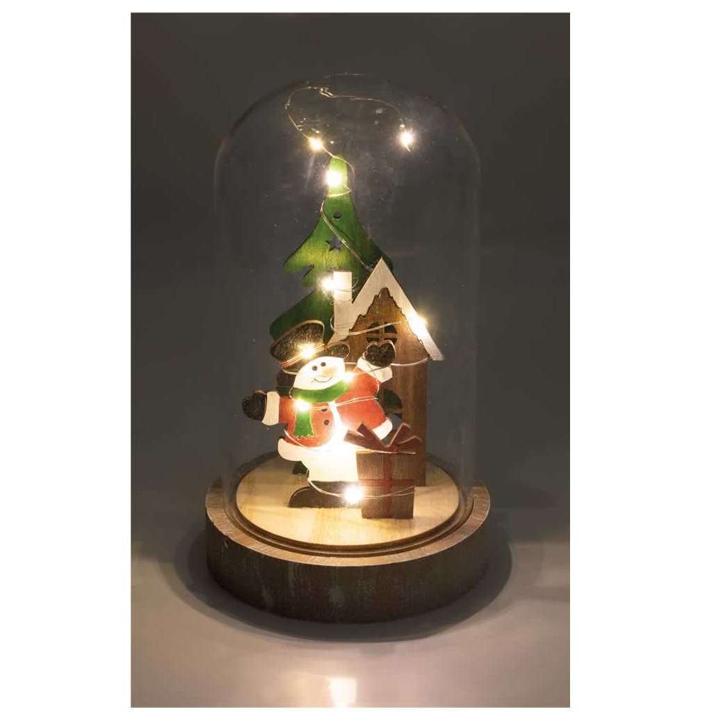 The battery powered light up Festive Cloche Scene from St Helens Home and Garden is a beautiful festive addition to your window sill, table top or office desk. The cloche has an authentic FSC approved wooden base, festive scene with a gift, snow topped house, Christmas tree and either a Father Christmas or Snowman. LED wire lights are wound around the scene to create a warm glow when lit, a glass dome encases the decoration. The cloche would also make a thoughtful gift for your family and friends. 20cm in height. Simply insert 2x AA batteries and you are ready to go.