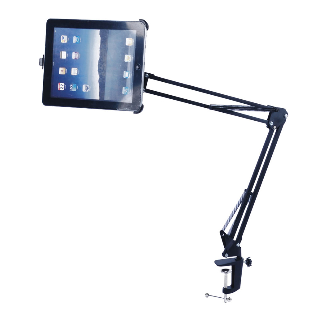 The Long Arm Tablet stand has a 360 degree angle adjust. The Tablet Stand is ideal for DJs or Musicians and will safely support devices. Designed to be quick and easy to assemble the long Arm Tablet Stand is great for mobile or temporary venues and locations, while the sturdy construction makes it durable and robust for everyday use.