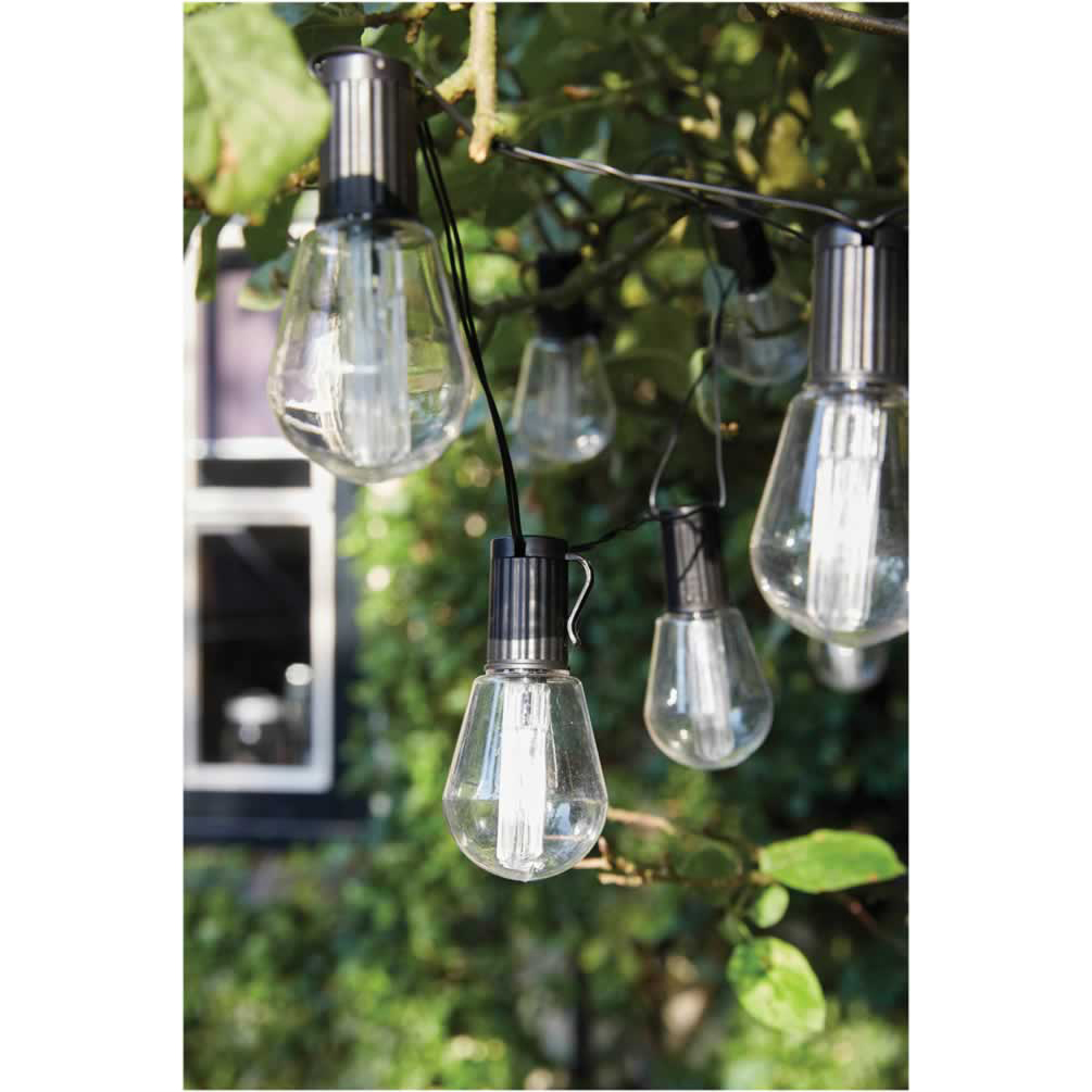 These attractive solar string lights feature 10 sofftone tube diffusers to provide a gentle and calming lighting theme. These lights are perfect for use at family events such as birthdays, BBQs, weddings, in fact any event where you want to add the wow factor. Dont wait for a special occasion though, these lights will provide a cosy atmosphere in gardens, terraces or patios at any time of the year. The lights feature on, off and flashing modes. These attractive IP44 rated energy saving LED Solar string lights uses the attached solar panel to recharge the AA batteries throughout daylight hours using free energy from the sun, once charged it will provide up to 6 hours of light. When dusk falls, the light will automatically turn on and turns off again at dawn. These lights makes the perfect gift or simply treat yourself!