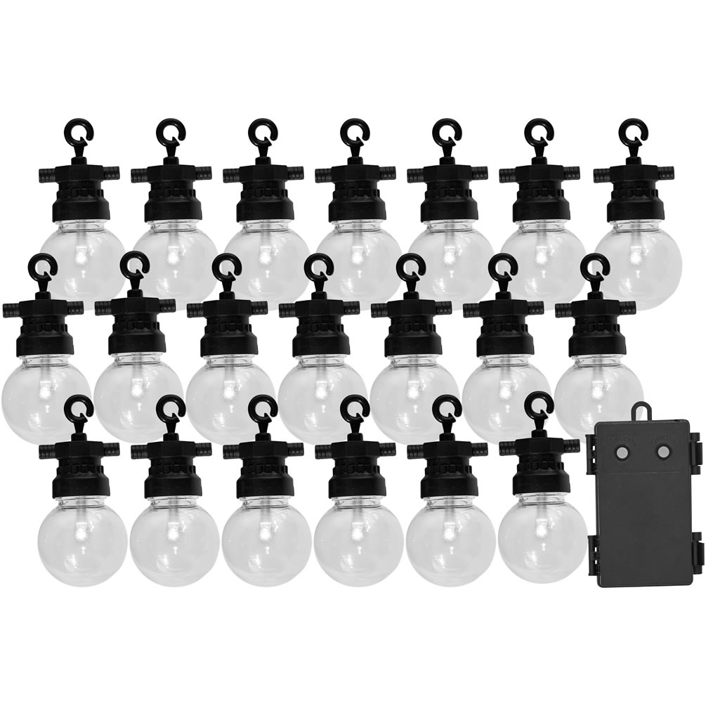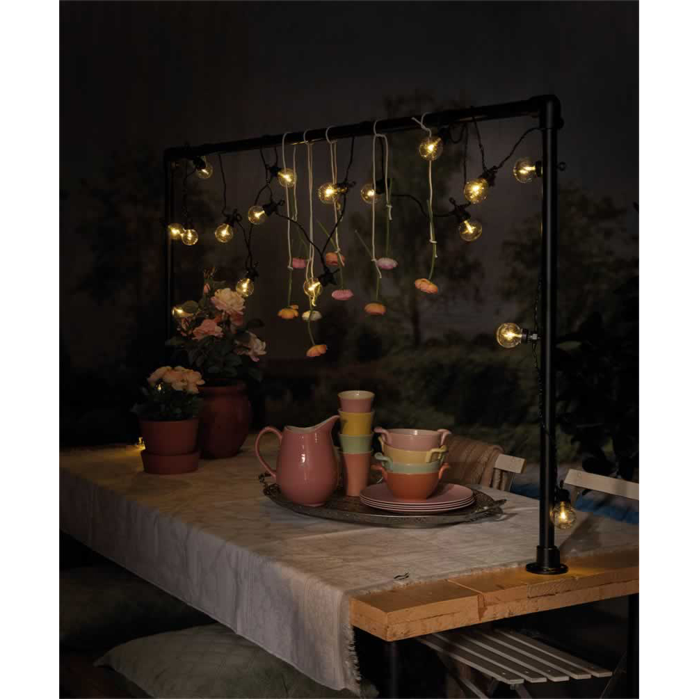 This cozy party lighting from Luxform Lighting is powered by 3x AA batteries (not supplied) meaning they can be set up and enjoyed in super quick time. The set is supplied with 20 clear G45 bulbs which offer a super stylish and classic look, additionally the lights have 8 separate functions and a handy on/off button. The lights feature an energy saving timer function which can be set to turn the lights on for a 6 hour period over 24 hours to save energy. Bulbs are placed every 30cm with a very generous total cable length of 6.05 metres.