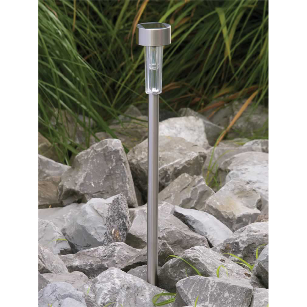 Decorate your outdoor living space even in remote areas by placing these stylish lights in a sunny spot, they will enhance the look and feel of any garden. This solar light is made from durable stainless steel and can also be used to provide ambient light sufficient to illuminate paths, borders and driveways etc. The light has an on/off switch and an integral solar panel.