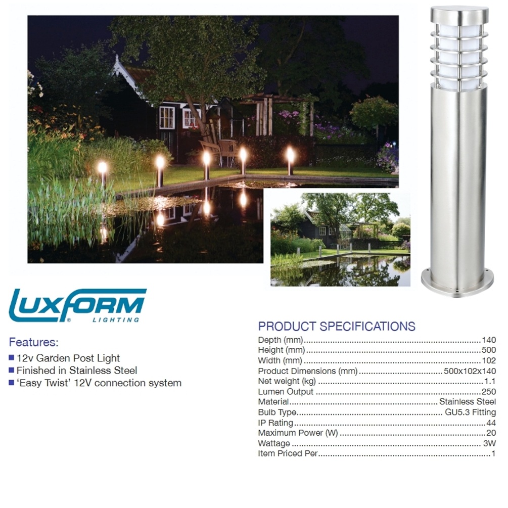 LUXFORM LIGHTING LISMORE 12V POST LIGHT IN STAINLESS STEEL