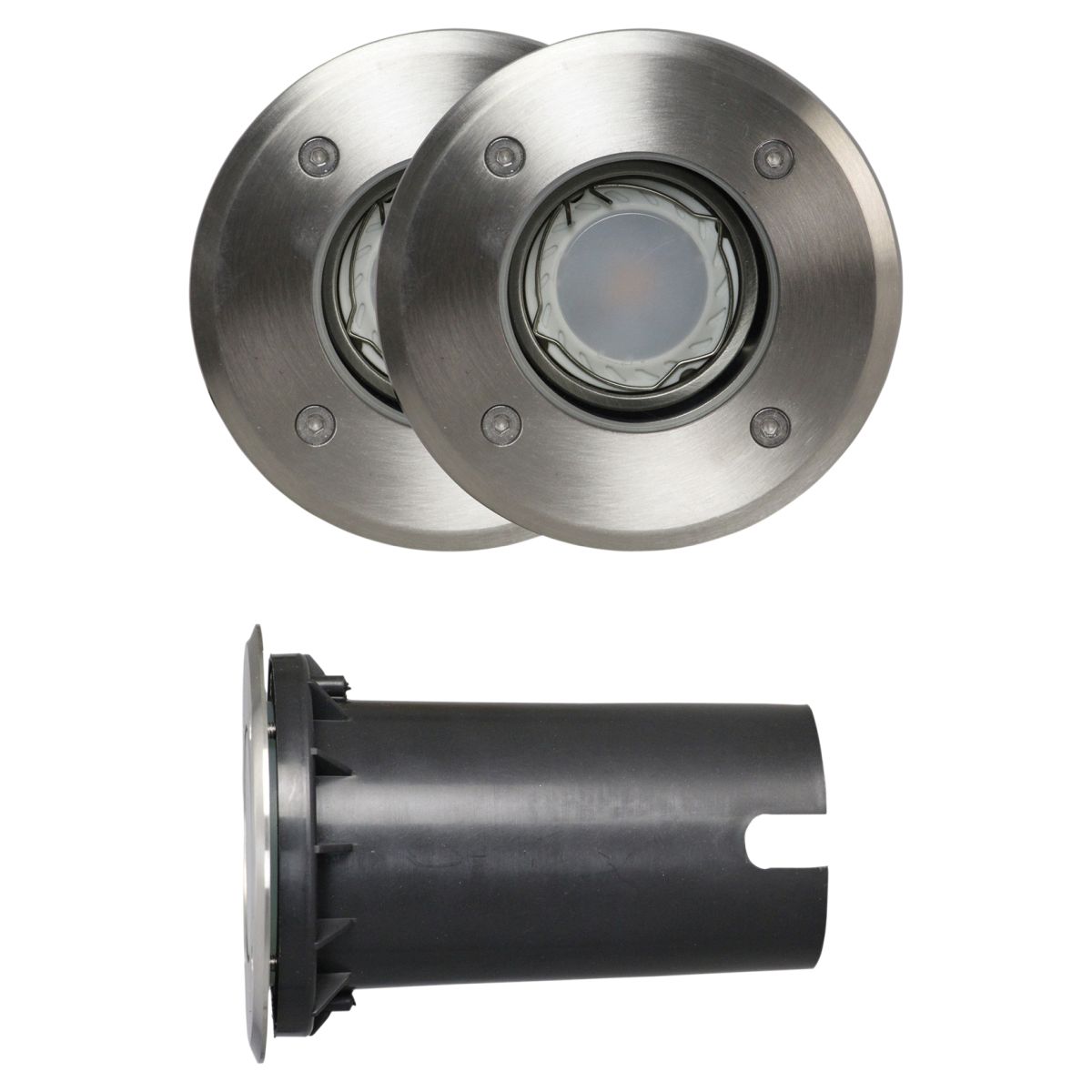 These 12v spotlights are suitable for illuminating statues, water features, bushes and trees. Ground spikes are provided so that the lights can be placed into the soil. This complete set contains 2 lights, a 10 metre mains cable, cable connectors and a 10w transformer suitable for the number of lights included. This set cannot be extended. This light works on the flexible Luxform Easy Twist 12V connection system, which is safe for children and animals. Everyone can create an atmospheric garden using these simple lights. Please remember that stainless steel is not a maintenance free product and that you need to clean the lights every 6 months to prevent discolouration