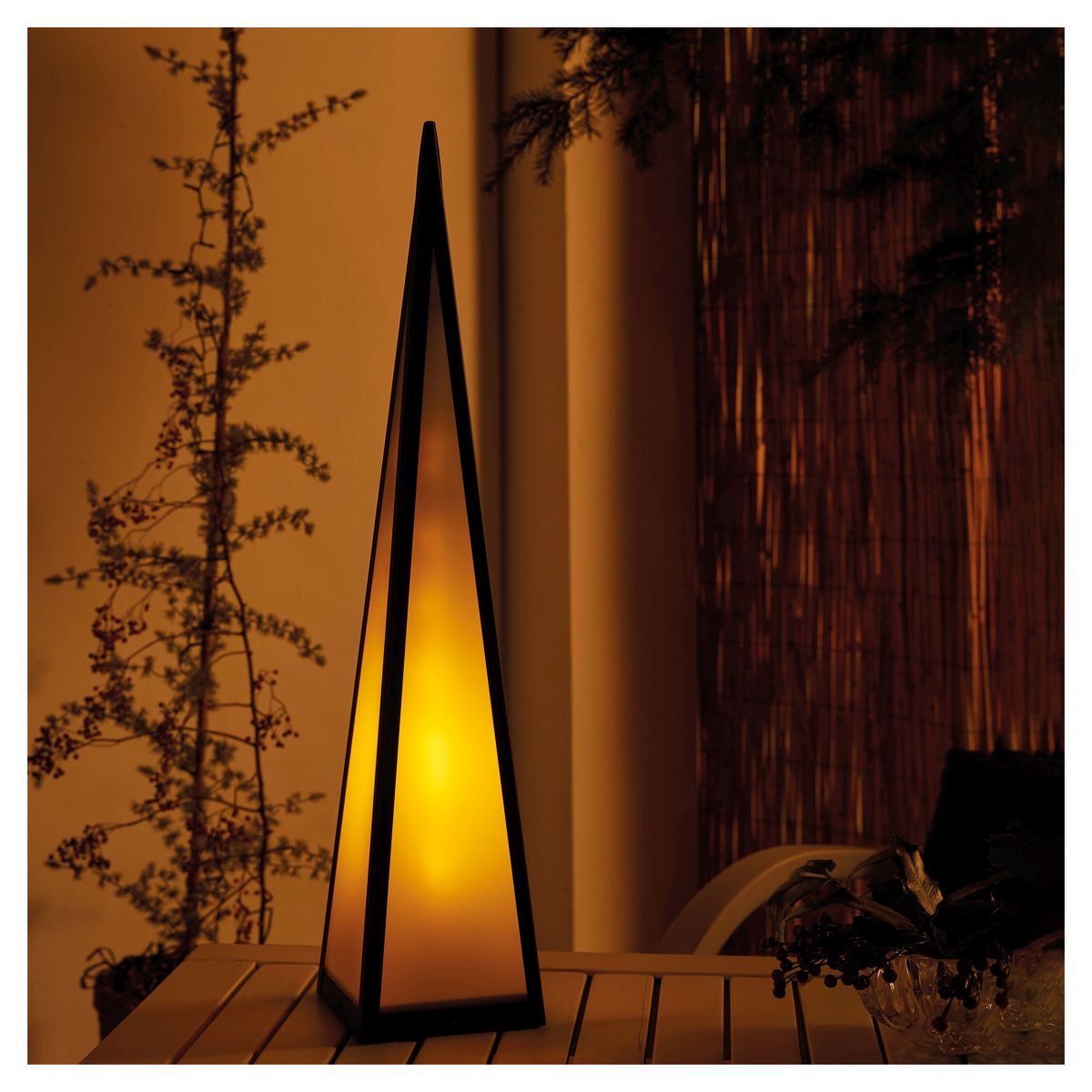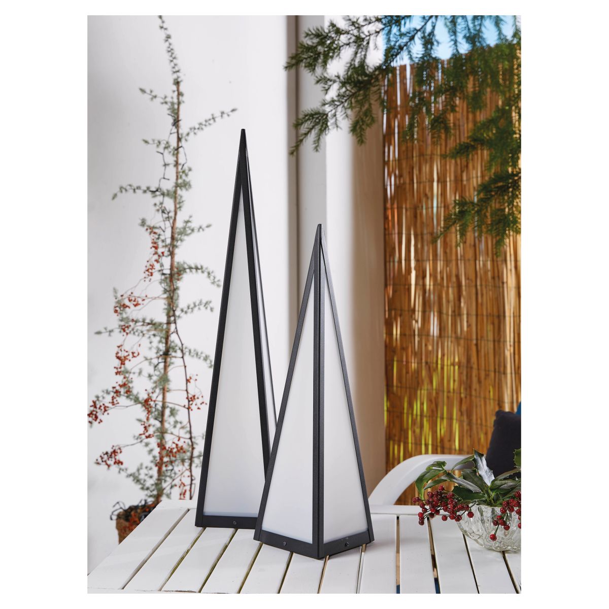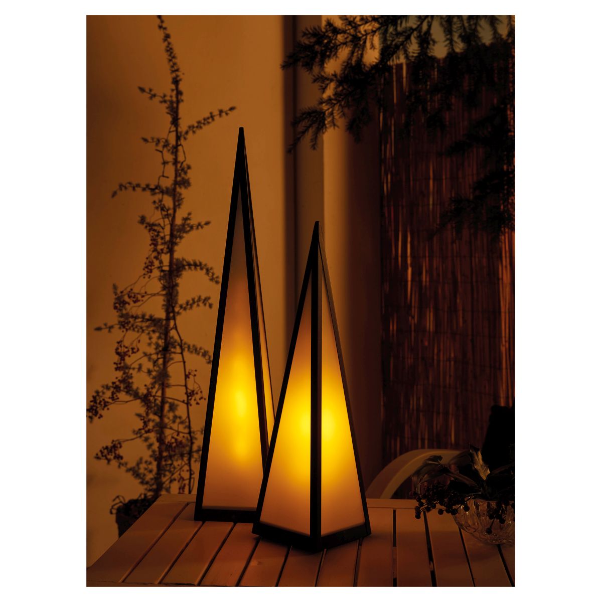 Decorate your outdoor living space by placing these beautiful, decorative battery powered pyramid lamps in your garden, they will enhance the look and feel of any garden. The lamps are freestanding so can be placed anywhere in your garden and will provide a gentle ambient light to illuminate their surroundings. This decorative lamp can be turned on and off using the on/off switch or the supplied handy remote control. There is also a timer option, in this mode the lamp will light for 4 or 6 hours and then shuts off until the same time the next day. Suitable for outdoor or indoor use.