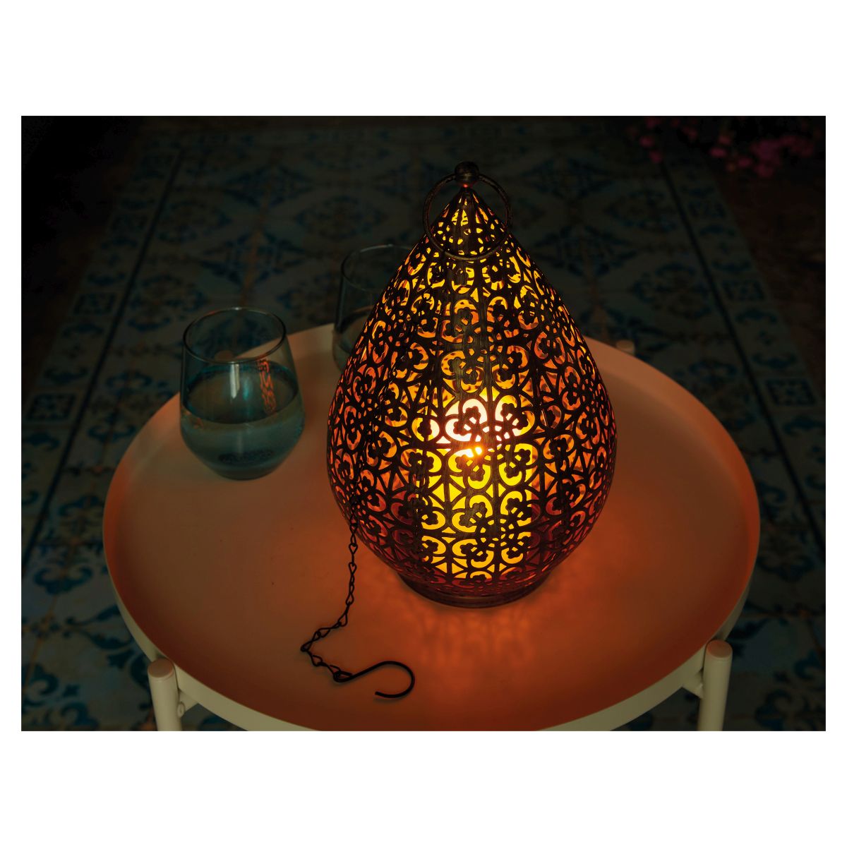 Decorate your outdoor living space and bring your garden to life at night by placing these super stylish hanging lights in a prominent spot, they will enhance the look and feel of any garden with their attractive oriental style, they also look fabulous by day, adding a shot of colour particularly in the winter months. This attractive IP44 rated energy saving LED light can be fully recharged via USB in10 hours and once charged it will provide up to 16 days of light. The built in timer can be setso the light illuminates for 6 hours then shuts off for 18 hours. The light can be hung from trees, garden umbrellas, pergolas or other garden structures using the attached hook, the total length of the light including the chain is 67.8cm. These lights are 100% USB rechargeable meaning no unsightly wires are needed to make them work. They make the perfect gift or simply treat yourself! Suitable for both outdoor and indoor use. Can be used as either a hanging or free standing light.