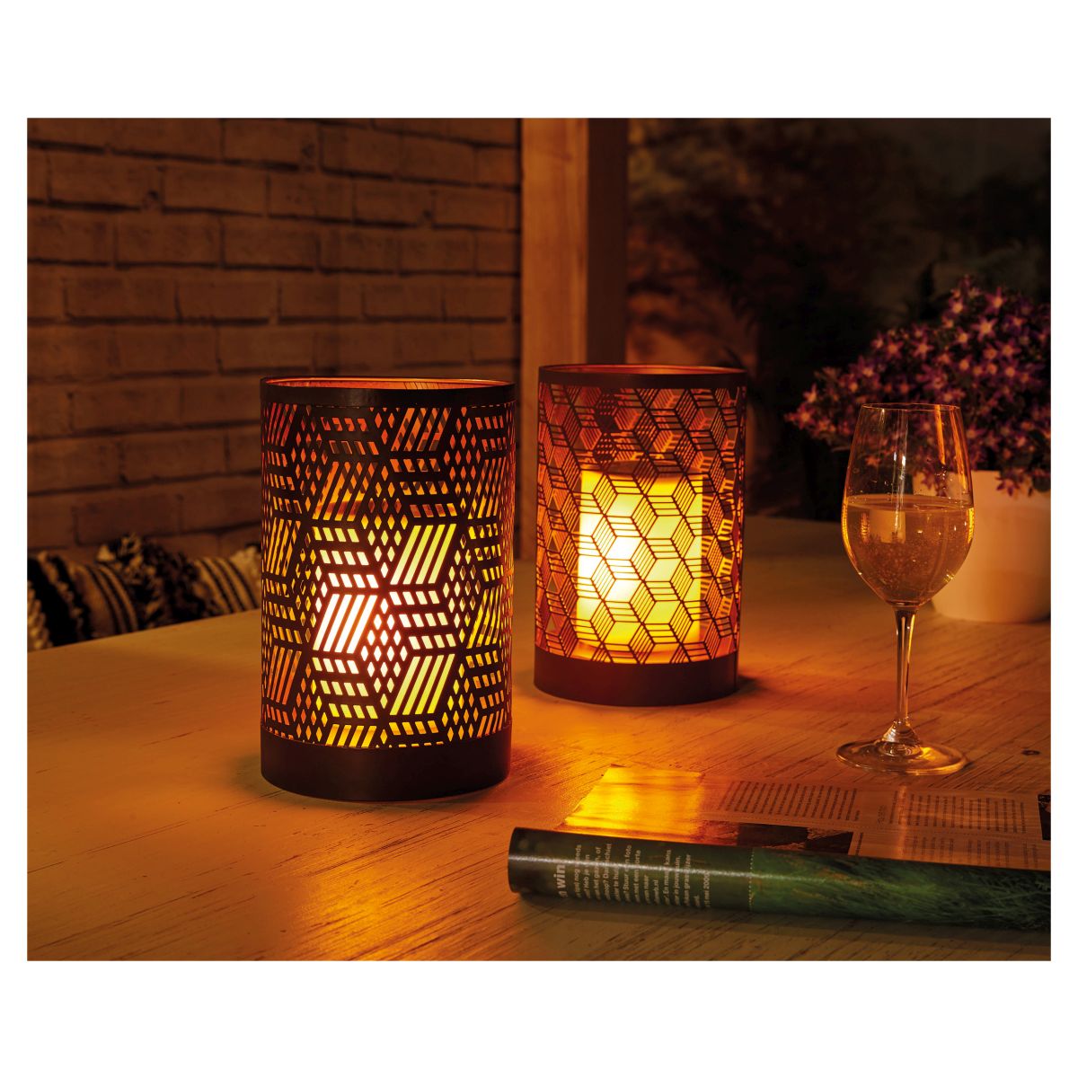Decorate your outdoor living space and bring your garden to life at night by placing these super stylish solar table lights in a sunny spot, they will enhance the look and feel of any garden adding cosy, intimate atmospheric lighting to any garden or patio area. This attractive IP44 rated energy saving LED solar light uses the attached solar panel to recharge the built-in battery throughout daylight hours using free energy from the sun, once charged it will provide up to 6 hours of light. When dusk falls, the light will automatically turn on and turns off again at dawn. These lights are 100% solar meaning no unsightly wires are needed to make them work. They make the perfect gift or simply treat yourself!.
