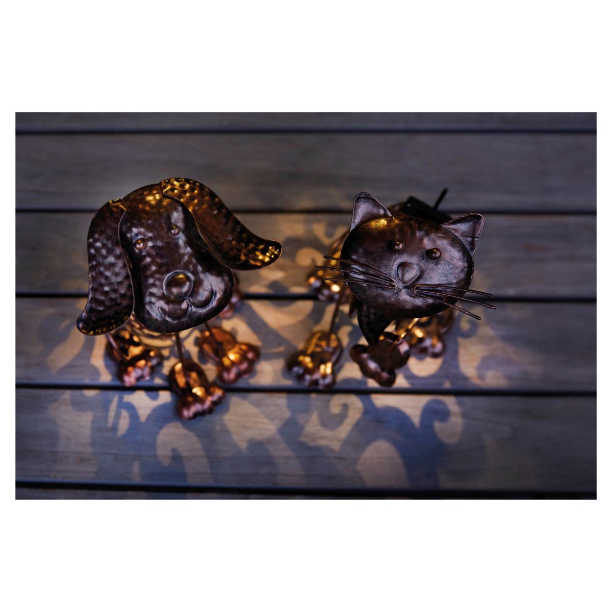 Decorate your garden even in remote areas by placing this beautiful, decorative Metal Dog anywhere in the sun, no wires are necessary as it is 100% solar powered. This energy saving solar Metal Dog is perfect for placing on garden lawns or patios and provides a gentle ambient light to illuminate its surroundings. This decorative ornament uses the integral solar panel to recharge the AA battery throughout daylight hours using free energy from the sun, once charged it will provide up to 6 hours of light. When dusk falls, the light will automatically turn on and turns off again at dawn.