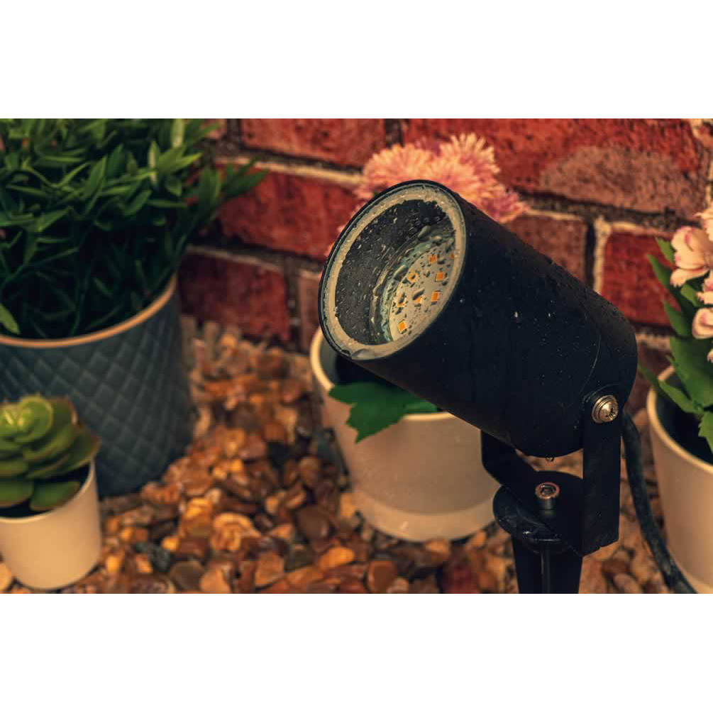 This professional outdoor spotlight is a perfect addition to any garden and is ideal for illuminating buildings, statues, pathways etc., and can be used straight from the box. No extra wiring is required. Made from high grade materials these lights are supplied with an extra long life 4W LED lamp and an extended 3 meter rubberised cable with a fitted 13A plug for plug and play action. The product can be either wall or ground mounted and is fitted with a flexible U shaped bracket for correct positioning.