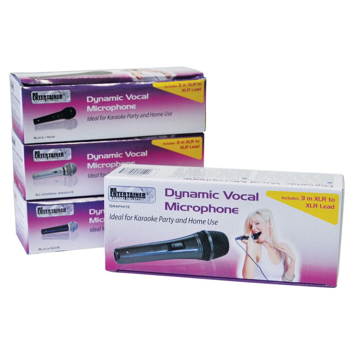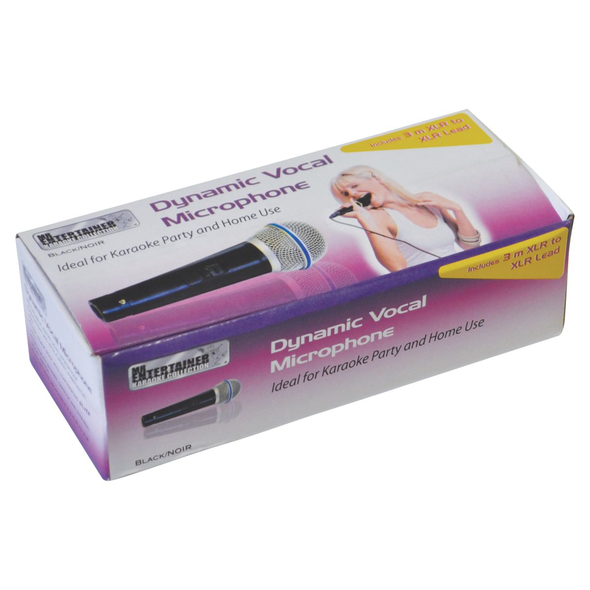 Entry level uni-directional, plastic bodied vocal microphone, part of the Mr Entertainer range. Manufactured from robust plastic this affordable mic feels weighty, substantial and comfortable to hold and looks great with its sleek black body and contrasting silver grill. Supplied with a high quality dynamic capsule, on/off switch and a detachable 3 m XLR socket to Mono Jack plug lead.