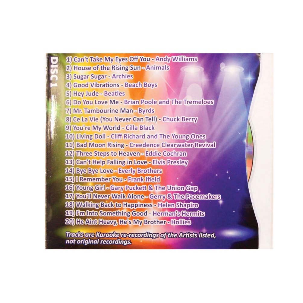 The Mr.Entertainer Karaoke CDG range offers a diverse selection of big hits from a range of musical styles and genres. This CDG gives the user 40 tracks of 60's hits. Take a trip down memory lane, Beatlemania, The summer of Love and Mods.