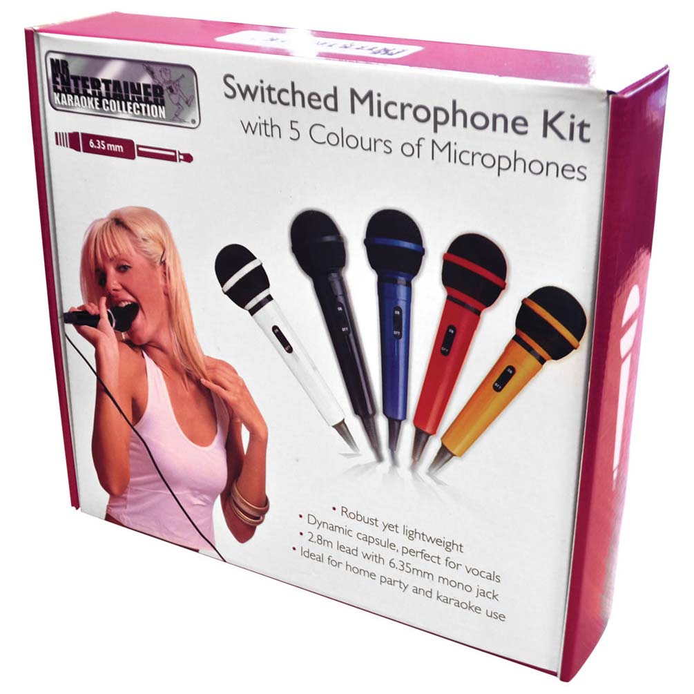 The karaoke kit of 5 different coloured microphones is ideal for both home party and general karaoke use. Made from a robust but lightweight plastic the product offers good sound reproduction and features a dynamic capsule perfect for vocals, 6.35mm mono jack plug and a built-in anti-tangle lead.