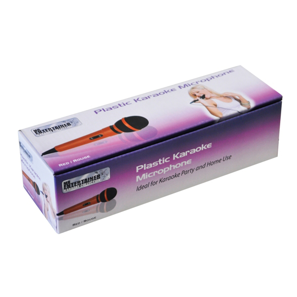 High quality plastic karaoke microphone. Ideal for both home and karaoke party use. This product features dynamic capsule, robust but light weight plastic case, 6.35mm mono jack plug, built-in anti- tangle lead and good sound reproduction.