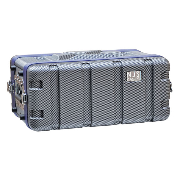 Heavy duty ABS Short rack case. The product features front and rear opening compartments, racking strip and carry handle. 60mm deep lid