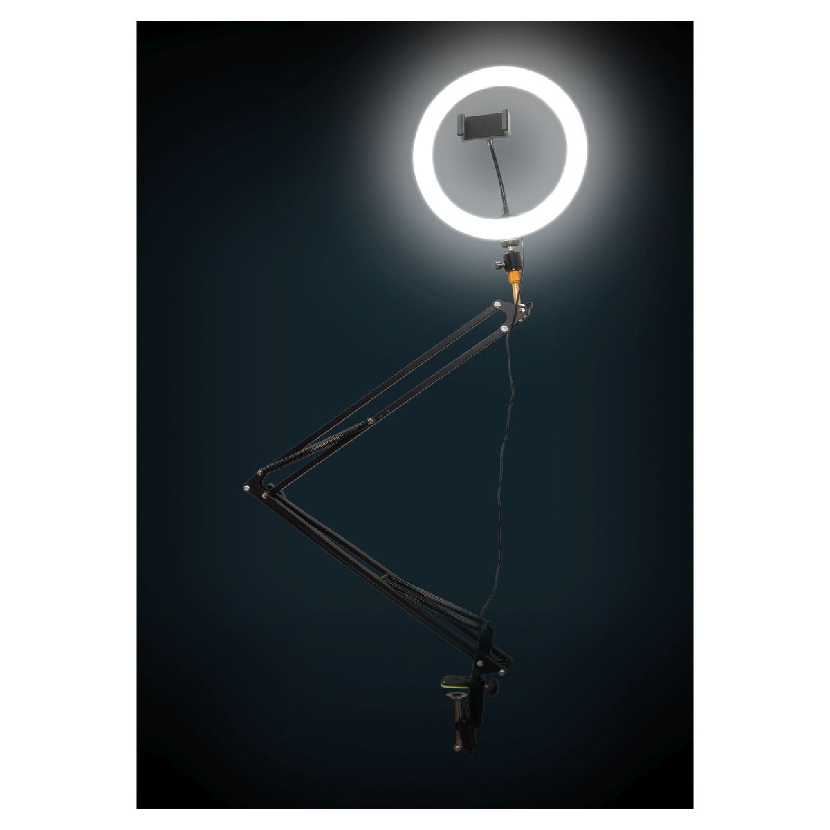 LED 360 SELFIE RING LIGHT WITH BOOM ARM AND MOUNTING CLAMP