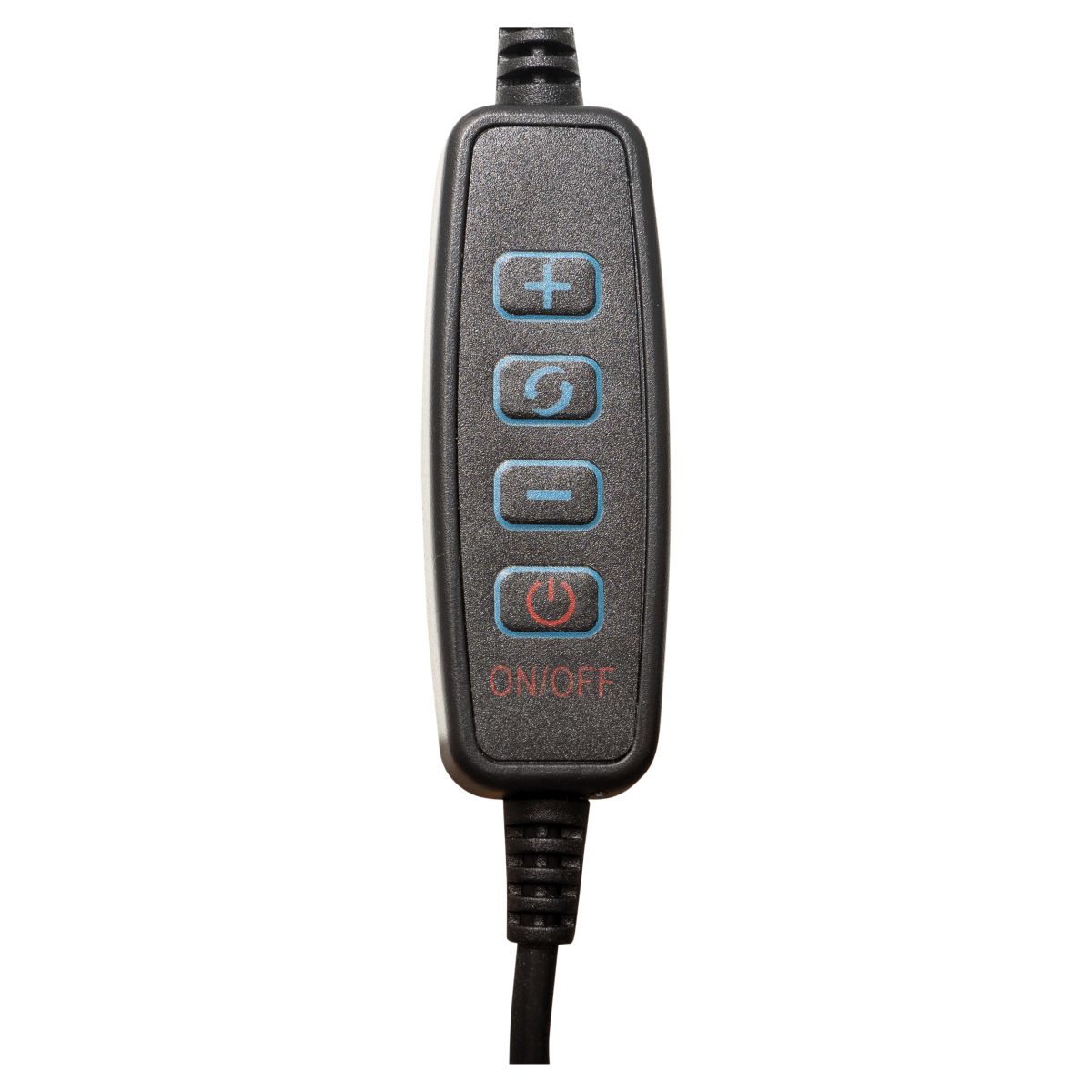 This Tripod Mounted LED Ring Light with Microphone Holder, 3x Mobile Phone Holders and Storage Platform is perfect for recording YouTube and tiktok videos, online tutorials and even taking selfies .The LED ring light allows you to take the perfect shot, the light is a very generous 26cm in diameter. Smaller items such as sound cards can be safely placed on the handy storage platform whilst you record. A 2m USB cable is attached (to power the light). A remote control for the light is also incorporated. The remote control allows the light to be dimmed through a range of colours, from warm yellow, white and warm white. The tripod stand is height adjustable from a minimum height of 88.5cm to a maximum height of 202cm .One of the phone holders is gooseneck and the second is a double holder for 2 phones. The metal storage platform is 16cm x 15cm.