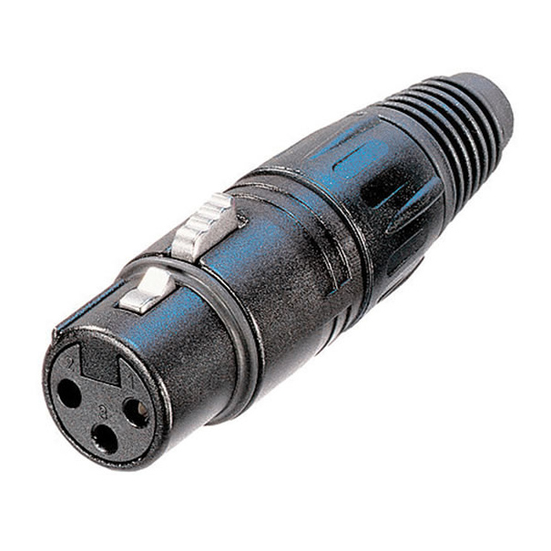 3 Pin socket cable connector, black metal housing and silver plated contacts. Neutrik Black Coloured Silver Plated NC3FX-BAG 3 Pole XLR Line Socket Connector. Polybag...