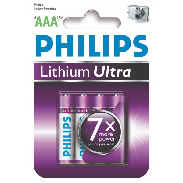 Philips Lithium Ultra batteries last an amazing 7 times longer than other alkaline types, delivering more photos or more hours of fun. The Philips Lithium Ultra AAA batteries are perfect for your camera, CD player and all your other high-energy consuming devices. It provides performance in a broad range of everyday devices.