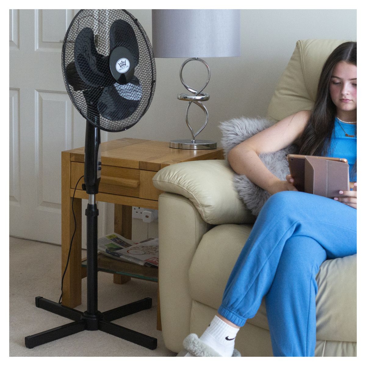 The Prem-I-Air 16 inch (40 cm) Pedestal Fan features 3 speed settings, an oscillating function for wider distribution and adjustable height and fan head angle to ensure that the cooling air really hits the spot. The fan is supplied with a sturdy cross foot base for added stability. With easy-to-use front button controls, a modern design and quiet operation this attractive pedestal fan is ideal for both home or small office use. Supplied in a robust 5 ply carton.