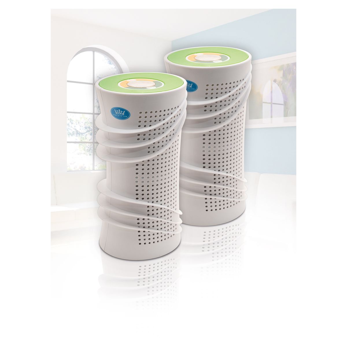 Twin Pack Cordless rechargeable dehumidifier for absorbing moisture in a multitude of small spaces, ideal for use in cars, caravans, cabinets, boxes, sheds and wardrobes, requires No Batteries or Wires to Work. This compact product soaks up moisture from the surrounding area using the enclosed silica gel crystals. When fully absorbed the crystals in the indicator window on top of the unit will change colour from orange to green. Simply place the unit on the Super Fast Fan driven heating recharging station for 2-3 hours, when fully recharged the indicator crystals will turn orange again. This dehumidifier is completely wire free nor does it need batteries to work, this makes this type of dehumidifier completely portable and usable anywhere! The absorbent crystals do not need to be changed or refilled and the product can be re-charged many times. Also has the added bonus of a handy Fan driven shoe drying attachment. Simply place the Shoe drying attachment on the recharge station and hot air is blown into the shoes or training shoes to dry them out.