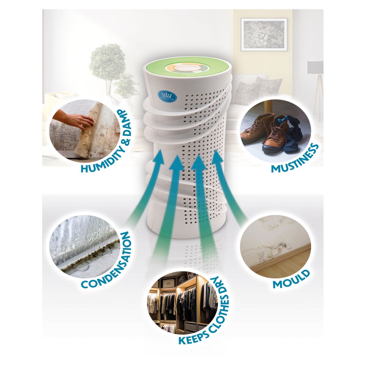 Reduces moisture and damp in confined spaces such as cupboards, wardrobes, caravans, drawers and cars etc.