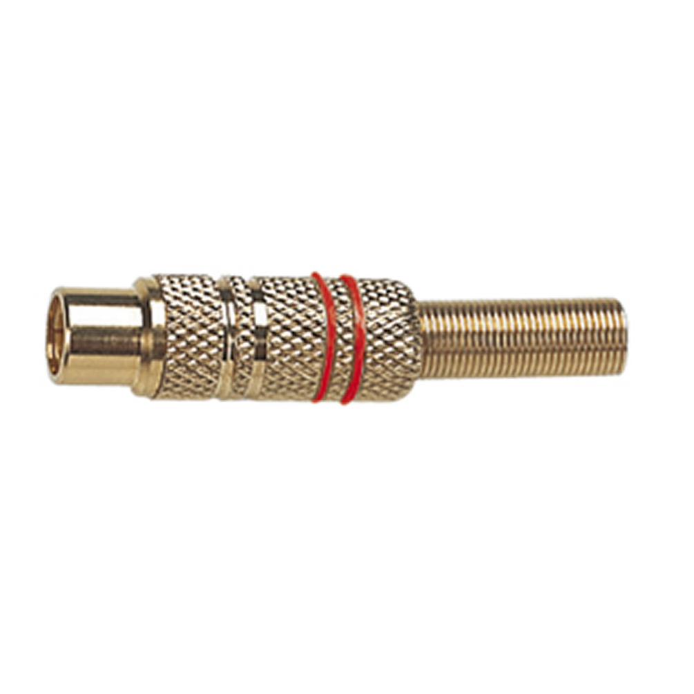 A high quality, metal cover with cable protector and solder terminals. Gold plated, for cables up to 5 mm. Red High Quality Gold Plated Phono Line Socket for Cable Up to 5 mm with Solde...