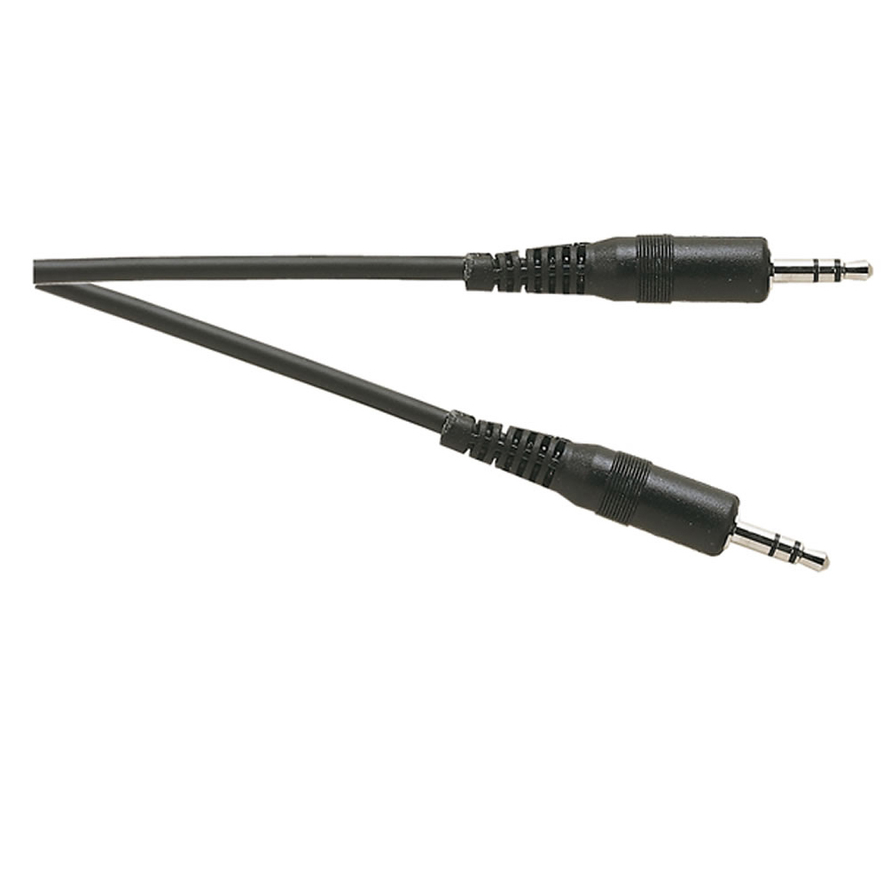 Black 3.5 mm Stereo jack plug to 3.5 mm stereo jack plug.