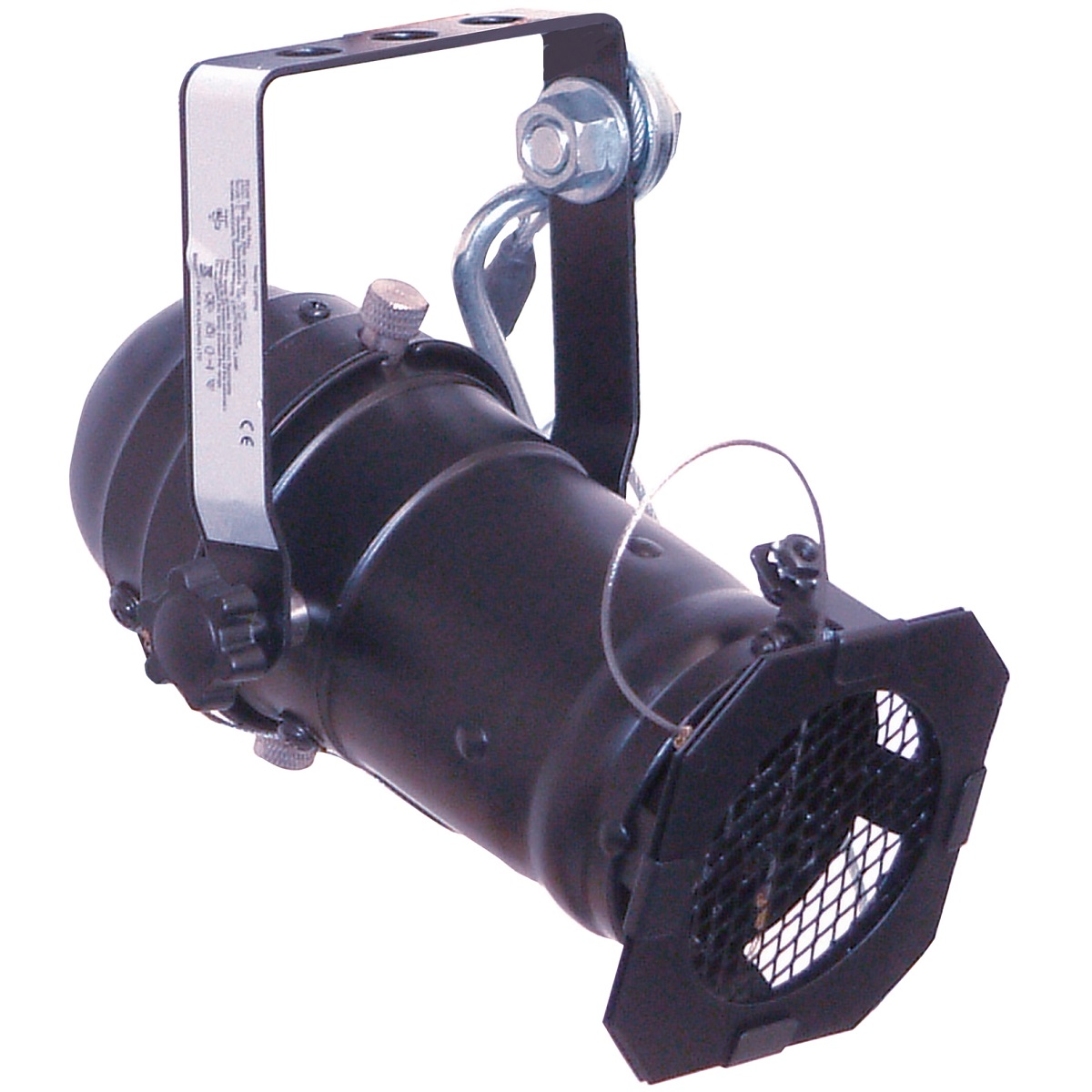 Professional Par 16 can with lamp retaining ring, GU10 mains type lamp holder and filter frame holder and easy adjust bracket