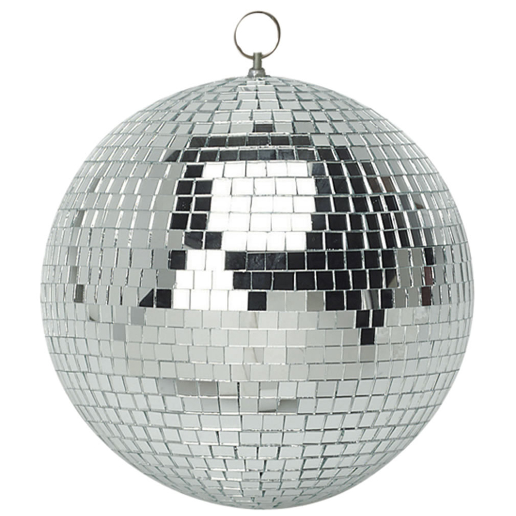 A lightweight mirror ball, which can provide a disco atmosphere to parties, barbecues, dances, etc. by projecting a sparkle effect on to surfaces within range when a spotlight is directed on to the mirror ball. Made from lightweight material, covered with polished mirror glass facets, these mirror balls have a mounting eye for hanging