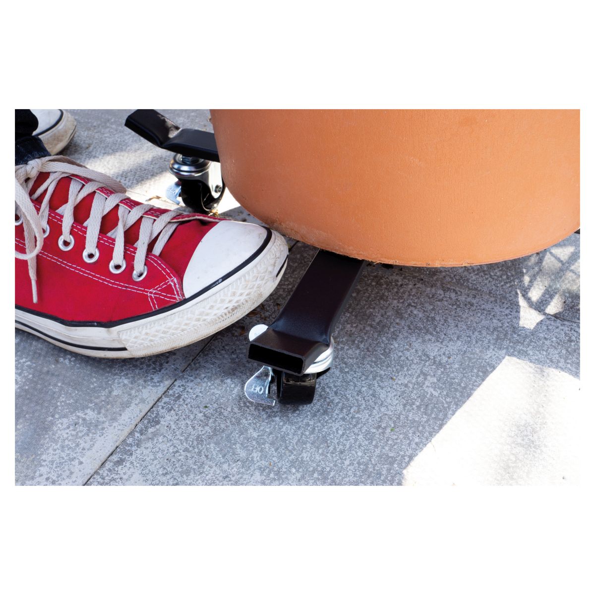 The adjustable width flower pot mover with 4 castors (2 lockable) from St Helens Home Garden is designed to allow you to safely and securely transport your pots, trees and shrubs around the garden. The mover can also be used as a permanent stand to prevent your patio getting stained and also to stop your grass from dying through lack of sun. The mover can hold pots and their contents of up to 25kg. The mover is made from strong powder coated iron. Supplied with four adjustable legs which can be extended to accommodate both small and large ports ranging in size from 40cm to 50cm.