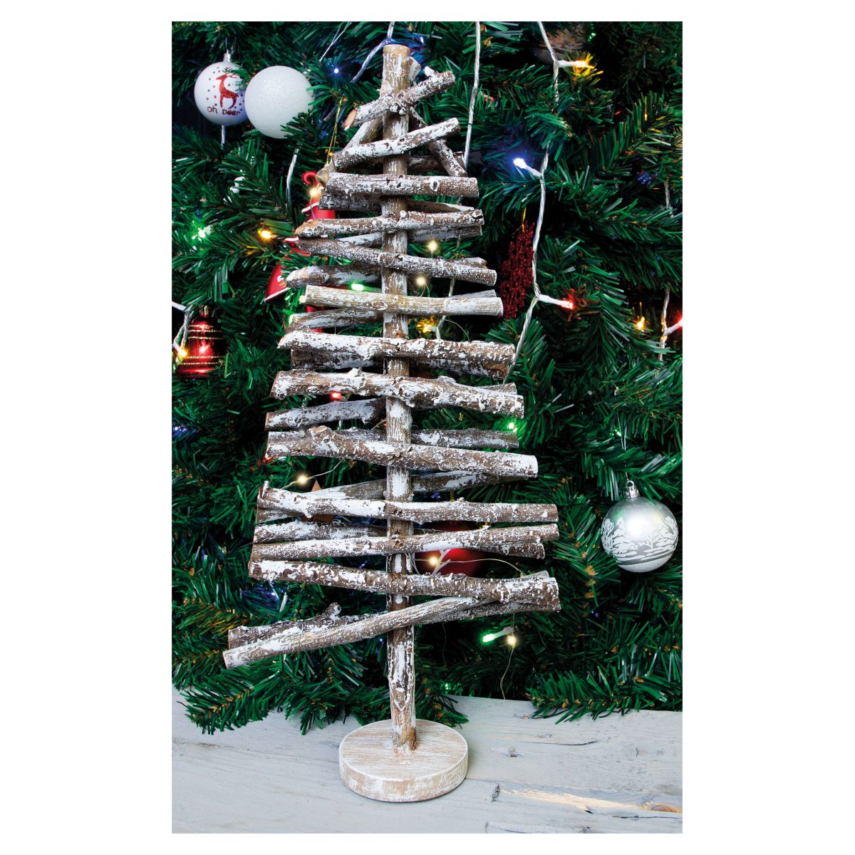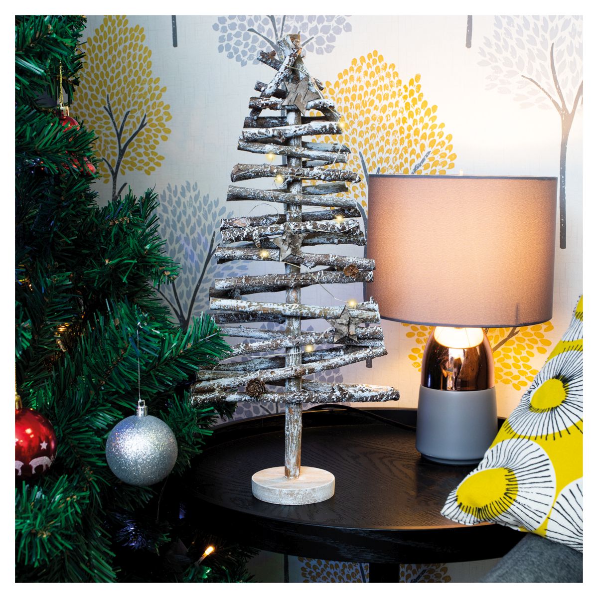 ST HELENS HOME AND GARDEN BATTERY POWERED BIRCH WOOD CHRISTMAS TREE LIGHT EFFECT