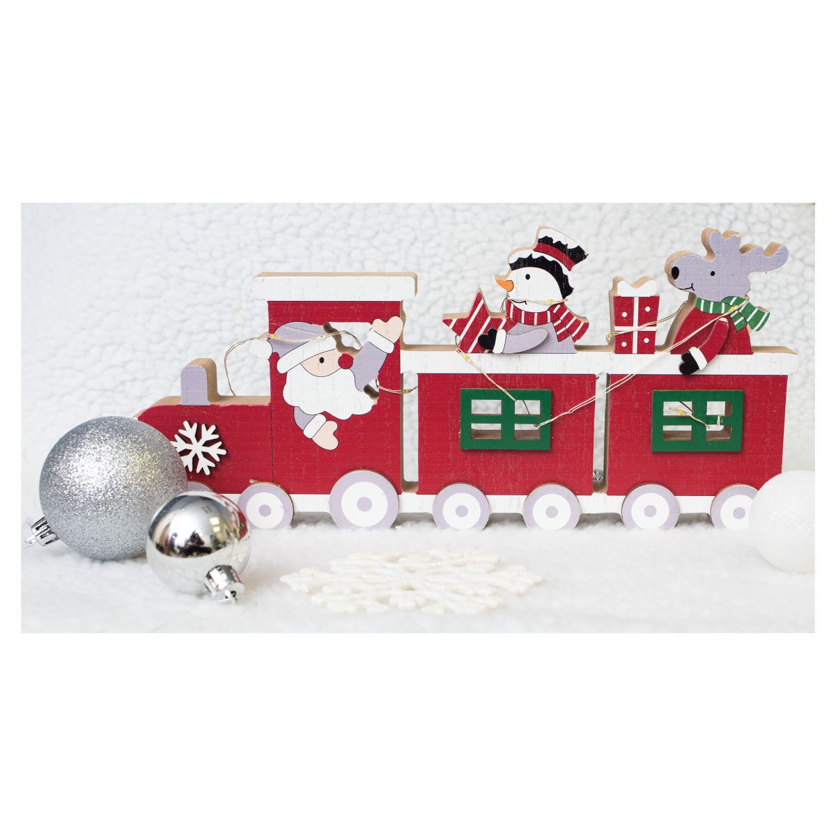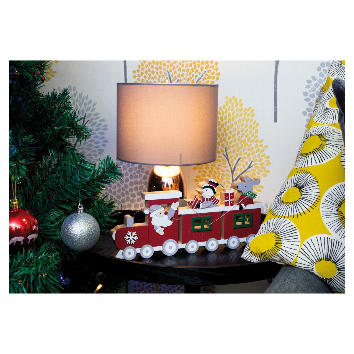 This beautifully crafted festive train light up ornament will look perfect on your window sill or table tops, in fact anywhere you want to create a wonderfully festive atmosphere. This train ornament is a fantastic alternative to the traditional Christmas candle bridges. The train is being driven by Father Christmas and his passengers are a snowman and a reindeer. LED string lights are wound round the train and create a lovely warm glow when switched on. The lights are battery operated, simply insert 2x AAA batteries (not supplied) and enjoy this festive light in the comfort of your own home.