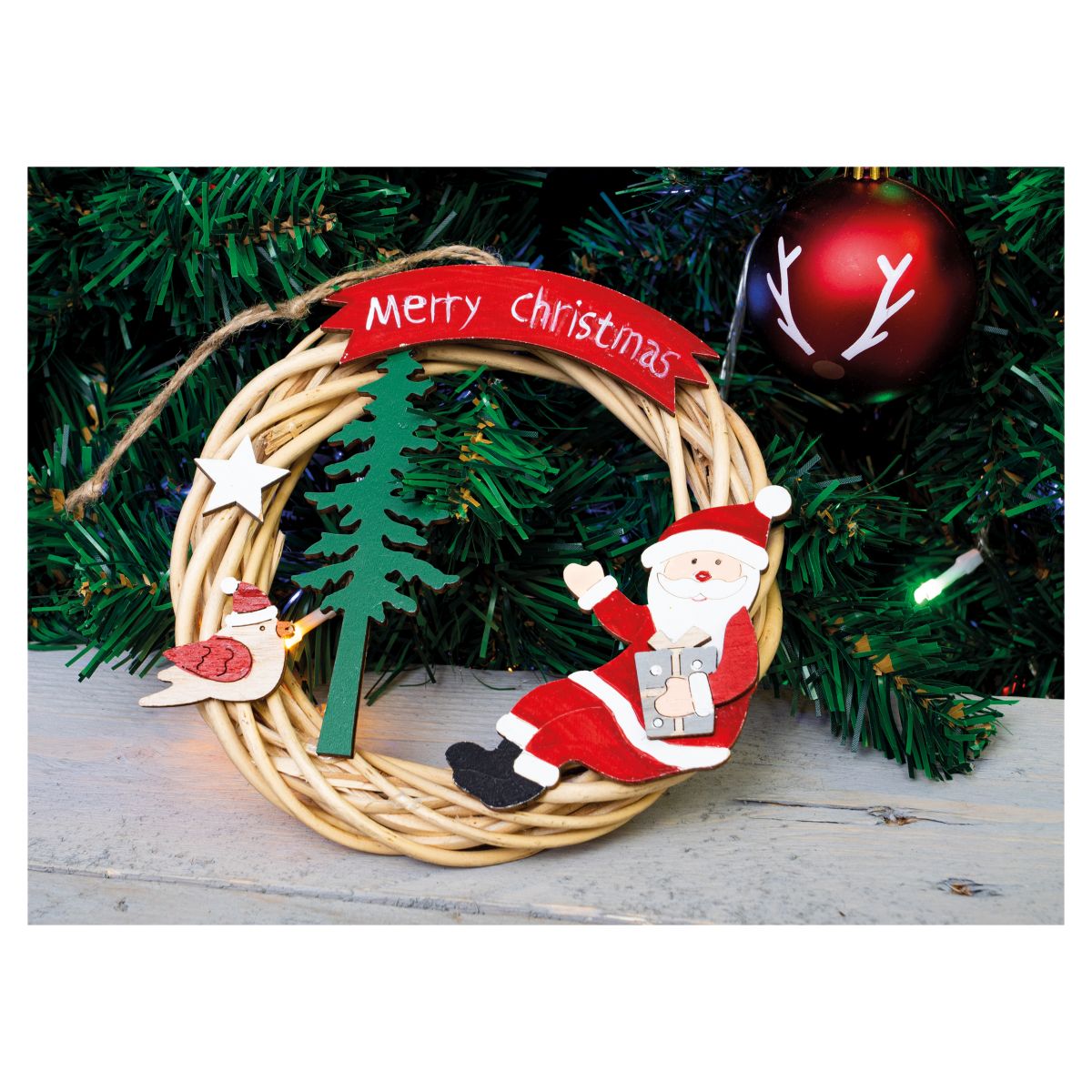St Helens Home & Garden, Battery Powered Wicker Christmas Wreath (Design Father Christmas)