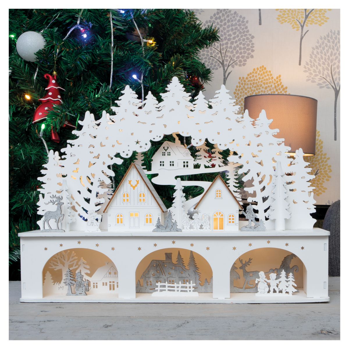 ST HELENS HOME AND GARDEN BATTERY POWERED WOODEN LIGHT UP FESTIVE SCENE