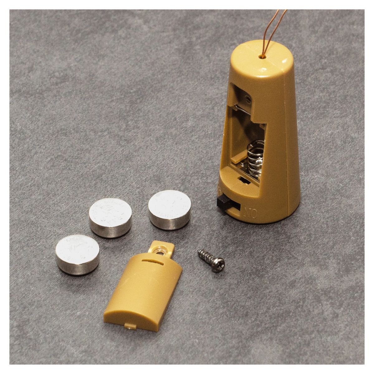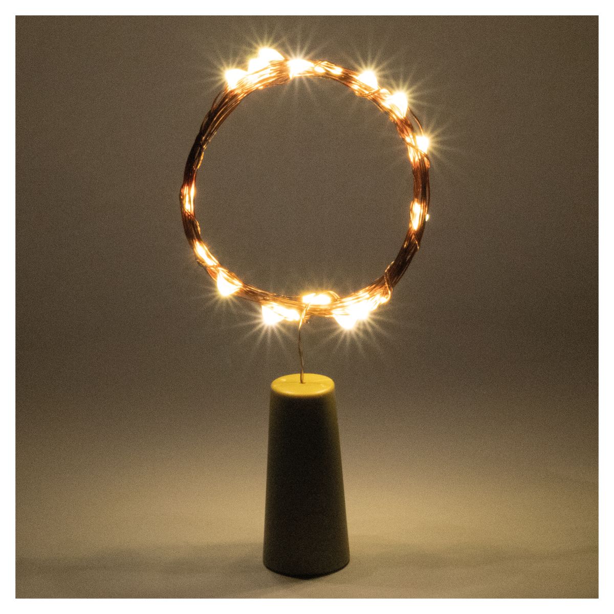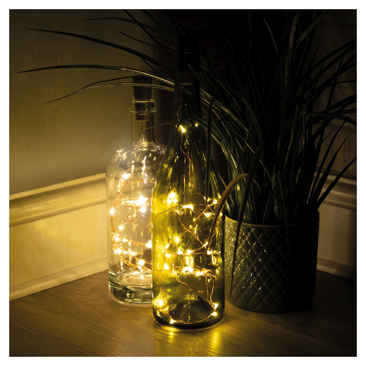 A simple but effective light effect which can transform empty bottles into attractive lamps and unique table displays .Designed with a cork-shaped stopper and a generous 1.9m copper wire this string light fits easily into most bottle types, uses 3 x LR44 batteries (included) simply place into an empty bottle, switch on and off using the switch on the cork.