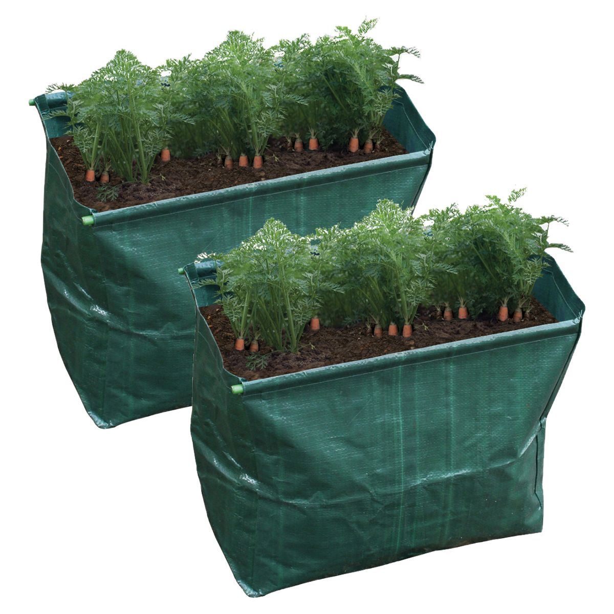 These Carrot planters are ideal for planting a variety of root crops such as carrots, onions, beetroot, salad leaves and herbs when your outdoor gardening space is limited .The planters are extra deep making them perfect for deep root development, rods are integrated through the top to ensure stability and there are drainage holes at the bottom .The planters warm up fast meaning crops can be planted slightly earlier than if they were going straight into the ground. They are ideal for gardeners who do not wish to create permanent vegetable patches in their garden, in fact, the grow bag can be stored away when you have harvested your crop or use it for planting flowers during other parts of the year. The planters are extremely easy to set up, simply unfold, fill with compost or soil and plant .Suitable for indoor and outdoor planting, perfect for balconies, patios, gardens and other small spaces. Generous 49L Capacity.