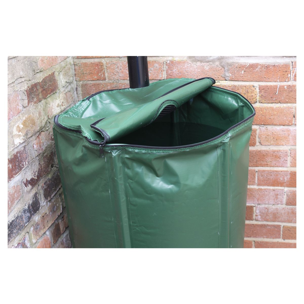 A rain barrel is a great way of collecting and storing rain water.There are many advantages to using a rain barrel, they allow you to conserve water, help to reduce runoff and soil erosion, rain water is a healthier choice for plants and provides you with water during droughts and hose pipe bans. A rain barrel can also dramatically reduce the amount of water you use from your home water supply during the summer months and beyond saving you money in the process. Simply place the barrel under a roof or downspout and wait for it to rain, rain water will run directly into the barrel and is stored until it is needed. The barrel also features a tap and valve at the bottom which allows you to connect a hose pipe directly to it. The top of the barrel is secured with a zip and the water hole is covered in a mesh material that allows water to flow freely in but leaves and small animals are kept out. Excess water will flow out of the top overflow pipe. The barrel is easily taken down and folded for storage when not in use.