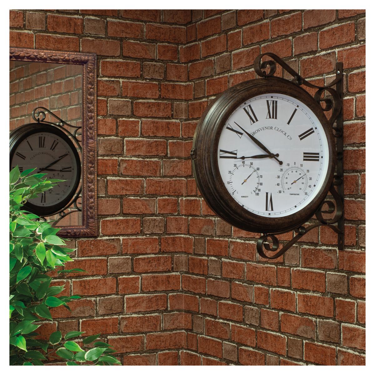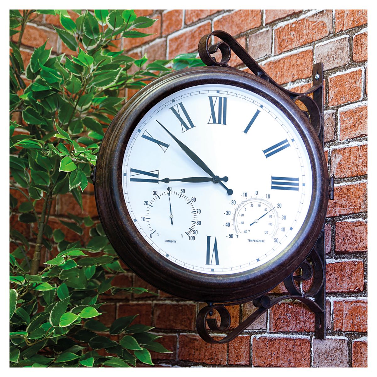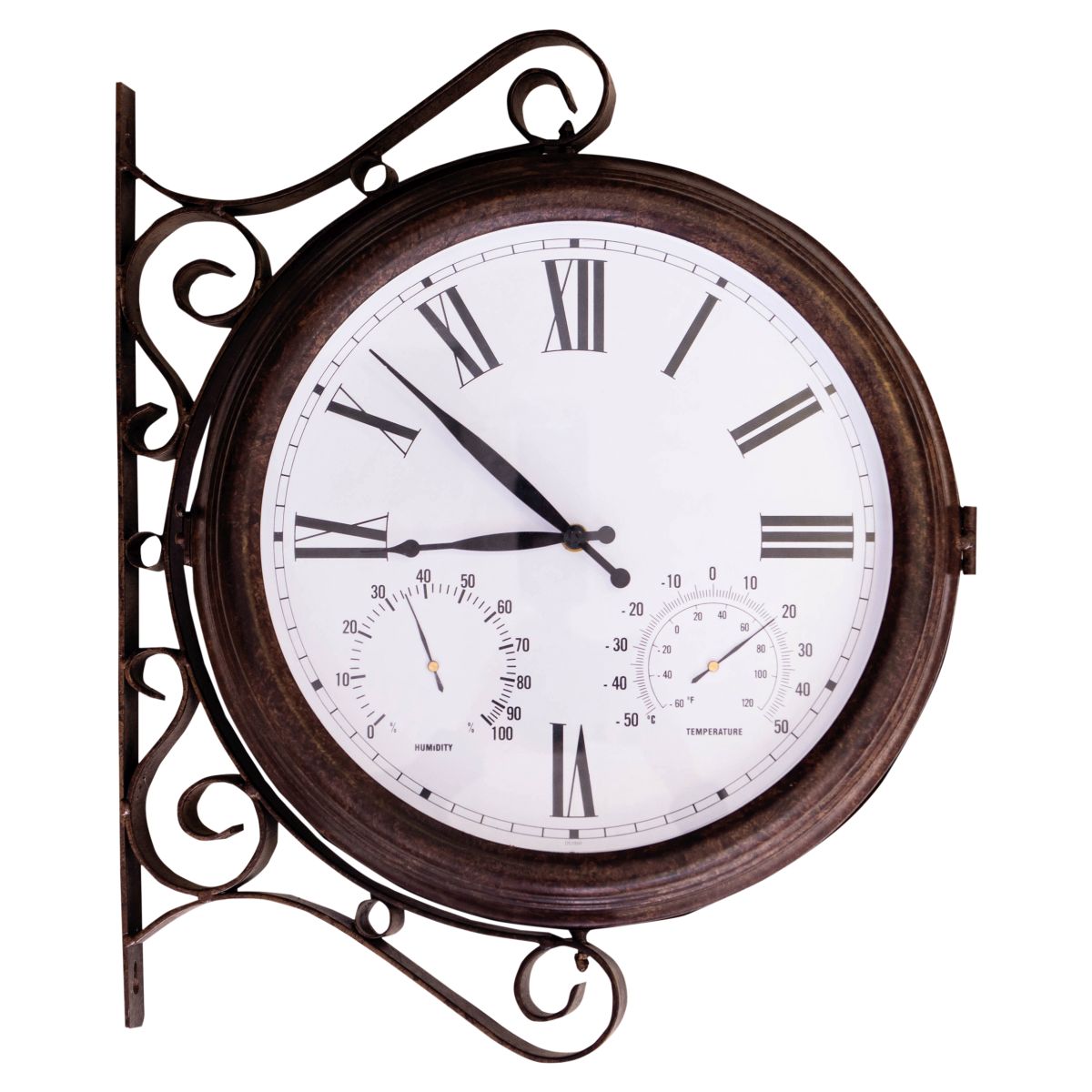 DOUBLE SIDED OUTDOOR STATION CLOCK WITH THERMOMETER HYGROMETER